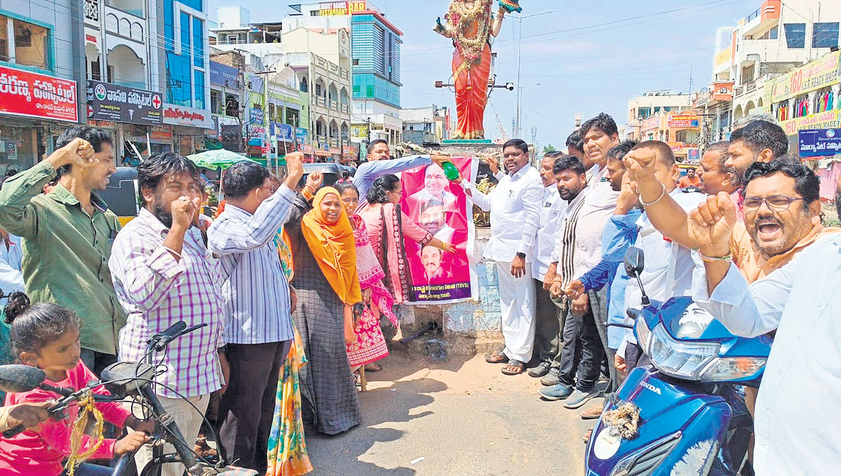 సూర్యాపేట(కలెక్టరేట్) / సూర్యాపేట అర్బన్/ నూతనకల్ / మద్దిరాల, జూన్ 10 : దివ్యాంగుల సంక్షేమానికి రాష్ట్ర ప్రభుత్వం పెద్దపీట వేస్తోందని జిల్లా గ్రంథాలయ సంస్థ చైర్మన్ నిమ్మల శ్రీనివాస్గౌడ్, బీఆర్ఎస్ పట్టణ అధ్యక్షుడు సవరాల సత్యనారాయణ అన్నారు. దివ్యాంగుల ఫించన్ను రూ.4,016 లకు పెంచడాన్ని హర్షిస్తూ బీఆర్ఎస్ దివ్యాంగుల విభాగం ఆధ్వర్యంలో శనివారం జిల్లా కేంద్రంలోని తెలంగాణ తల్లి విగ్రహం వద్ద సీఎం కేసీఆర్, మంత్రి జగదీష్రెడ్డి, దివ్యాంగుల కార్పొరేషన్ చైర్మన్ వాసుదేవరెడ్డి చిత్రపటాలకు క్షీరాభిషేకం చేశారు. ఈ సందర్భంగా వారు మాట్లాడుతూ రాష్ట్రంలోని ప్రజలందరి కష్టసు ఖాలను తెలుసుకుని వారి అభ్యున్నతికి సీఎం కేసీఆర్ కృషి చేస్తు న్నారని కొనియాడారు.కార్యక్రమంలో సంఘం నాయకులు నయీం, జానయ్య, నాగయ్య, లింగయ్య, శ్రీనివాస్, రాజశేఖర్, సుశీల, నాగ మణి, సరిత, కవిత, క్రిష్ణవేణి, అఖిల్, జానీ, వెంకన్న, రవికుమార్, మల్సూర్ పాల్గొన్నారు. అదేవిధంగా ఎంఎస్పీ ఆధ్వర్యంలో సూర్యా పేటలో మంద కృష్ణమాదిగ చిత్రపటానికి క్షీరాభిషేకం నిర్వహిం చారు. కార్యక్రమంలో పార్టీ జిల్లా ఇన్చార్జి యాతాకుల రాజయ్య మాదిగ, నాయకులు చింత సతీష్, జహీర్బాబా, బాబు, దైద వెంకన్న, బిక్షపతిగౌడ్, సైదులు, లింగయ్య, రాంకుమార్ పాల్గొ న్నారు. నూతనకల్ మండలంలో సీఎం కేసీఆర్ చిత్రపటానికి క్షీరాభిషేకం నిర్వహించారు. కార్యక్రమంలో ఎంపీటీసీ పన్నాల రమామల్లారెడ్డి, బీఆర్ఎస్ దివ్యాంగుల విభాగం రాష్ట్ర నాయకుడు నేండ్ర మల్లారెడ్డి, నాయకులు బద్దం వెంకట్రెడ్డి, సురిగి ఉప్ప లయ్య, బిక్షంరెడ్డి పాల్గొన్నారు. మద్దిరాల మండల కేంద్రంలో సీఎం కేసీఆర్ చిత్రపటానికి దివ్యాంగులు క్షీరాభిషేకం నిర్వహించారు. కార్యక్రమంలో రైతుబంధు జిల్లా కోఆర్డినేటర్ రజాక్, నర్సయ్య, వెంకటయ్య, సోమయ్య పాల్గొన్నారు.