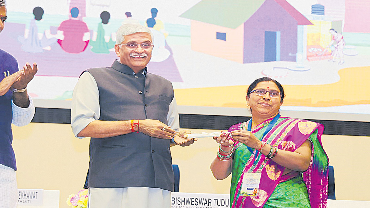 కేంద్రమంత్రి చేతుల మీదుగా అందుకున్న సర్పంచ్ మీనాక్షి