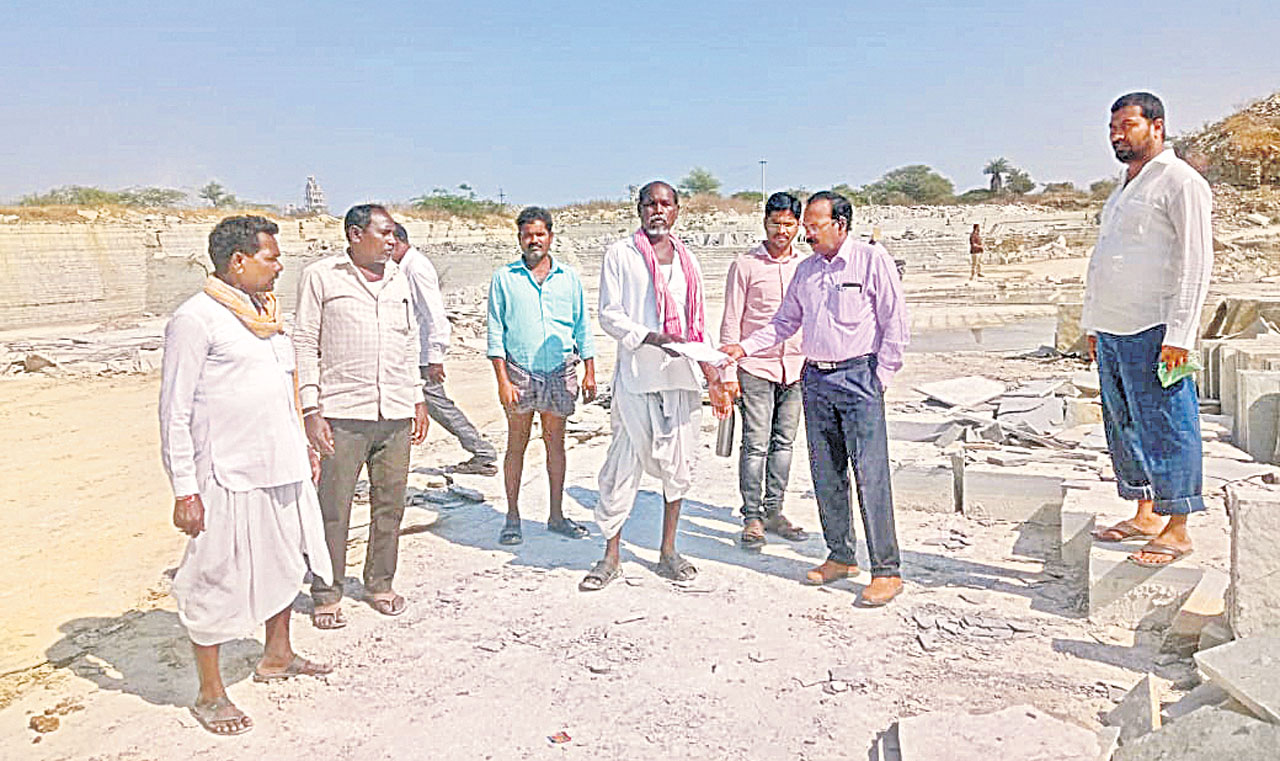 తాండూరు రూరల్, డిసెంబరు 30: అక్రమ మైనింగ్ తవ్వకాలపై తాండూరు మైన్స్ ఏడీ శామెల్ జాకబ్ శనివారం గనుల్లో తిరిగి విచారణ చేపట్టారు. మండలంలోని కరన్కోట్ గ్రామానికి చెందిన నామ్దార్ సురేందర్, భార్య విజయలక్ష్మీ అక్రమ తవ్వకాలపై వారం రోజుల కిందట కలెక్టర్ నారాయణరెడ్డికి ప్రజావాణిలో ఫిర్యాదు చేసింది. ఇట్టి ఫిర్యాదును స్వీకరించిన మైన్స్ ఏడీ జాకబ్తోపాటు విద్యుత్ శాఖ, మైన్స్ శాఖ అధికారులు సంయుక్తంగా కలిసి క్షేత్రస్థాయిలో పర్యటించారు. విజయలక్ష్మి తన భర్త పేరిట కరన్కోట్ గ్రామ శివారులోని సర్వేనెంబర్-2లో 1 ఎకరాల 25గుంటల భూమిని ప్రభుత్వం 2009లో తన భర్త నామ్దార్ సురేందర్ పేరిట కేటాయించిందని, అయితే 2017లో తన భర్త మృతిచెందగా 2018లో లీజు కోసం దరఖాస్తు చేసుకున్నామని ఏడీతో వివరించింది. అయితే అదే గ్రామానికి చెందిన కొంతమంది మల్లికార్జున్ పేరిట సుధాకర్, బసప్ప, అయ్యప్పలు సమీపంలోని సర్వేనెంబర్-2లోనే అక్రమ తవ్వకాలు జరుపుతూ తన భూమిలో కూడా అక్రమ తవ్వకాలు జరిపి విలువైన నాపరాతిని కొల్లగొట్టారని ఆరోపించింది. ఇట్టి భూమిపై కరన్కోట్ గ్రామానికి చెందిన కొందరు నకిలీ ధృవపత్రాలు సృష్టించి విలువైన తమ నాపరాతి భూమిలో తవ్వకాలు జరిపి తనకు ఇబ్బందులకు గురి చేస్తున్నారని వాపోయింది. ఈ మేరకు ఏడీ క్షేత్రస్థాయిలో పర్యటించి ఏమేరకు తవ్వకాలు జరిపారు? సురేందర్పేరిట ఎన్ని ఎకరాల్లో నాపరాతి విస్తరించి ఉందనే దానిపై సమగ్ర వివరాలు సేకరించారు. మల్లికార్జున సొసైటీ వారు ఏ మేరకు తవ్వకాలు జరిపారనే దానిపై పరిశీలించారు. అక్రమ తవ్వకాలు చేపడితే కఠిన చర్యలు చేపడతామన్నారు. తవ్వకాలు జరుపకుండా నాలుగు విద్యుత్ సరఫరా లైన్లను సిద్ధం చేశామన్నారు. అదేవిధంగా మిషన్లను సీజ్ చేశామన్నారు. ఆయన వెంట మైన్స్ ఆర్ఐ రవి, విద్యుత్ శాఖ అధికారులు, మల్లికార్జున సొసైటీ సభ్యులున్నారు.