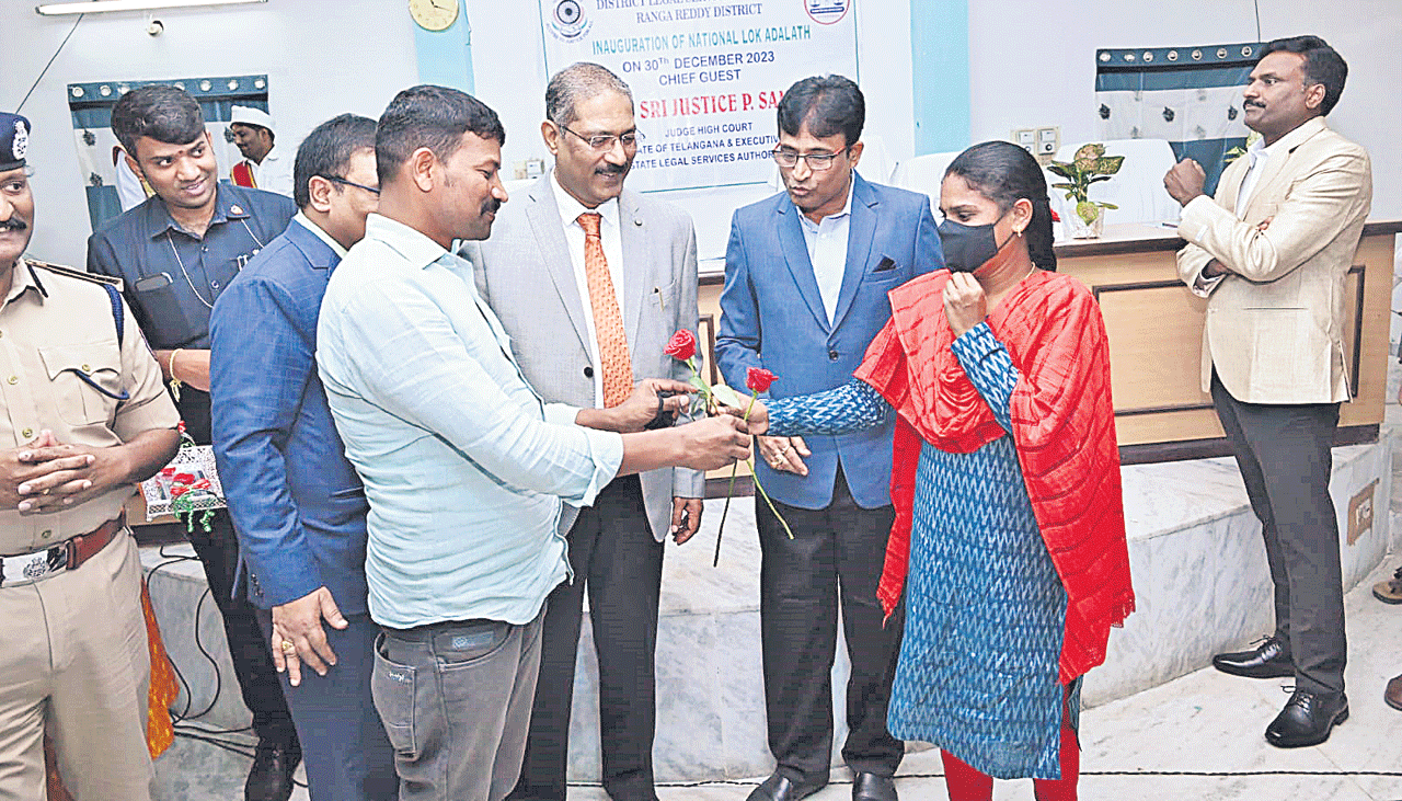 రంగారెడ్డి అర్బన్, డిసెంబరు 30 : రాజీమార్గమే రాజమార్గమని హైకోర్టు జడ్జీ, తెలంగాణ రాష్ట్ర న్యాయ సేవాధికార సంస్థ ఎగ్జిక్యూటివ్ చైర్మన్ సామ్ కోశాయ్ అన్నారు. జాతీయ, రాష్ట్ర న్యాయ సేవాధికార సంస్థల ఆదేశాల మేరకు రంగారెడ్డి జిల్లాలోని అన్ని కోర్టు ప్రాంగణాల్లో శనివారం జాతీయ లోక్ అదాలత్ నిర్వహించారు. రంగారెడ్డి జిల్లా కోర్టులో నిర్వహించిన కార్యక్రమానికి ఆయన ముఖ్యఅతిథిగా విచ్చేశారు. ఈ సందర్భంగా మాట్లాడుతూ జాతీయ లోక్ అదాలత్ను సద్వినియోగం చేసుకోవాలని తెలిపారు. ఆస్తి, కుటుంబ పరమైన సమస్యలకు సంబంధించిన కేసులు పరిష్కరించుకునేందుకు లోక్ అదాలత్ మంచి వేదిక అని తెలిపారు. రాచకొండ సీపీ సుధీర్బాబు మాట్లాడుతూ కేసులు పరిష్కారం చేసుకోవడంలో లోక్అదాలత్లు ముఖ్యమైన పాత్ర పోషిస్తాయని, కక్షిదారులు సద్వినియోగం చేసుకోవాలని సూచించారు. తెలగాణ రాష్ట్ర న్యాయ సేవాధికార ముఖ్య కార్యదర్శి గోవర్దన్రెడ్డి మాట్లాడుతూ పలుమార్లు కోర్టుల చుట్టూ తిరగకుండా.. వ్యయ ప్రయాసాలకు గురికాకుండా సత్వరమే కేసులను పరిష్కరించే వేదికయే లోక్ అదాలత్ అని చెప్పారు. జిల్లా న్యాయసేవాధికార సంస్థ కార్యదర్శి, సీనియర్ సివిల్ జడ్జి ఇ.ఇందిరా మాట్లాడుతూ జిల్లావ్యాప్తంగా అన్ని కోర్టు ప్రాంగణాల్లో 38 లోక్ అదాలత్ బెంచీలు ఏర్పాటు చేశామని చెప్పారు.