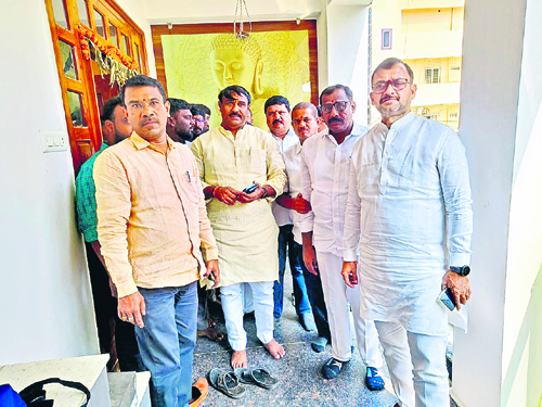 కీసర: బీజేపీ మేడ్చల్ నియోజకవర్గం అభ్యర్థిగా ముందుగా తనని ప్రకటించి, బీ-ఫామ్ను ఏనుగు సుదర్శన్రెడ్డికి ఇవ్వడం పట్ల బీజేపీ జిల్లా రూరల్ అధ్యక్షుడు పటోళ్ల విక్రమ్రెడ్డి అధిష్ఠానంపై తీవ్ర అసంతృప్తి వ్యక్తం చేశారు. కీసర ఆర్డీవో కార్యాలయంలో శుక్రవారం నామినేషన్ దాఖలు చేసిన అనంతరం ఆయన విలేకర్ల సమావేశంలో మాట్లాడారు. పార్టీ సిద్ధాంతాలకు కట్టుబడి పనిచేశానని, పార్టీ అధిష్టానం ముందు తన పేరును ప్రకటించి, అనంతరం రాత్రికిరాత్రే పేరు మార్చి ఏనుగు సుదర్శన్రెడ్డి పేరు ప్రకటించడంతో తీవ్ర మనస్తాపానికి గురయ్యానన్నారు. దీనిపై తనకు, తన అనుచరులకు పార్టీ అధిష్టానం పట్ల గౌరవం పోతోందన్నారు. ఈ విషయంపై అధిష్టానంతో తాడోపేడో తెల్చుకుంటానని ఆయన స్పష్టం చేశారు.
