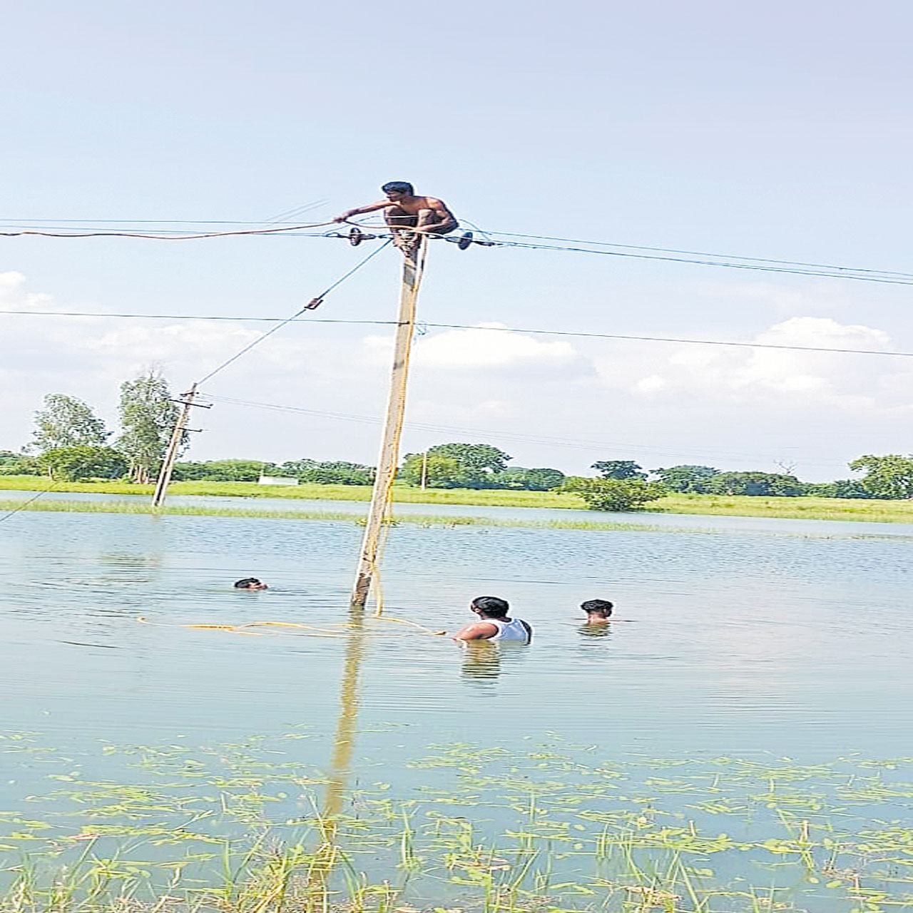 బొంరా్సపేట్, ఆగస్టు 1: ప్రభుత్వ కార్యాలయాల్లో పని చేసే కొందరు నెలసరి వేతనాలు తీసుకుంటున్నా తమ పనులు చేయాలంటే బద్దకంగా ఉంటారు. మరి కొందరు మాత్రం అందుకు భిన్నంగా ఉంటారనేందుకు ఈ ఫొటోనే నిదర్శనం.. ఎంతటి ప్రమాదకర పరిస్థితి ఏర్పడినా తమ ప్రాణాలను పణంగా పెట్టి విధులు నిర్వర్తిస్తున్నారు. బొంరా్సపేట్ మండలంలోని విద్యుత్ శాఖలో పని చేస్తున్న సిబ్బంది అందుకు నిలువెత్తు సాక్ష్యమని చెప్పవచ్చు. వారం రోజులు కురిసిన భారీ వర్షాలతో బొంరా్సపేట మండలంలోని చెరువులు, కుంటలు, వాగులు జలకళను సంతరించుకున్నాయి. భారీ వర్షాలకు అక్కడక్కగా విద్యుత్ వైర్లు తెగిపోయి బ్రెక్ డౌన్ కావడంతో విద్యుత్ సరఫరాలో అంతరాయం ఏర్పడుతుంది. మండల పరిధిలోని ఏర్పుమళ్ల, బురాన్పూర్ విద్యుత్ లైన్లు బ్రెక్ డౌన్ కావడంతో ఆయా గ్రామ పరిధిలోని సుద్దకుంట, బురాన్పూర్, తాటికుంటలో వైర్లు తెగిపోయాయి. దీంతో ఆయా పరిసర గ్రామాలకు విద్యుత్ సరఫఱా నిలిచిపోయింది. పనంటే ప్రాణంగా ప్రేమించే సంబంధిత గ్రామ జూనియర్ లైన్మెన్లు ప్రాణాలకు తెగించి ఆ కుంటలో ఈదుకుంటూ వెళ్లి లైన్లను మెరుగు పర్చి చీకటి గ్రామాల్లో వెలుగులు నింపారు. విధి నిర్వాహణలో వారు చూపిన తెగువకు మండల ప్రజలు హ్యట్సప్ అంటూ అభినందించారు.