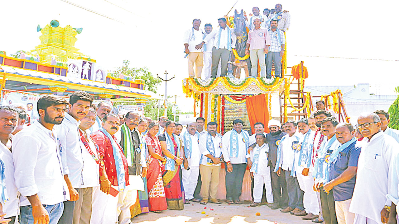 కులకచర్ల, మే 2: బహుజనుల ఆరాధ్యుడు సర్దార్ సర్వాయి పాపన్నగౌడ్ అని పరిగి ఎమ్మెల్యే కె.మహే్షరెడ్డి అన్నారు. మండలంలోని ఇప్పాయిపల్లిలో మంగళవారం సర్దార్ సర్వాయి పాపన్నగౌడ్ విగ్రహాన్ని ఆవిష్కరించారు. అదేవిధంగా పాపన్నగౌడ్ కమ్యూనిటీ భవన నిర్మాణానికి శంకుస్థాపన చేశారు. ఈ సందర్భంగా ఏర్పాటు చేసిన సమావేశంలో ఆయన మాట్లాడారు. గౌడకులస్థులు కష్టపడి పనిచేస్తారని, వారిసమస్యలను ప్రభుత్వం దృష్టికి తీసుకొస్తామని తెలిపారు. విగ్రహం ఏర్పాటుకు రూ.50వేల విరాళాన్ని అందజేశారు. అఅలాగే పాపన్నగౌడ్ కమ్యూనిటీ భవనం నిర్మాణానికి ఎమ్మెల్యే నిధుల నుంచి మొదటగా రూ.5 లక్షలు మంజూరు చేస్తున్నానని, మరో రూ.5 లక్షలు రెండో విడుతలో మంజూరు చేస్తామని తెలిపారు. అదేవిధంగా డీసీసీబీ చైర్మన్ మనోహర్రెడ్డి సర్వాయి పాపన్నగౌడ్ విగ్రహానికి పూలమాలలు వేసి నివాళులర్పించారు. ఈ సందర్భంగా విగ్రహ ఏర్పాటుకు రూ.50వేలు విరాళంగా అందజేశారు. ఈ కార్యక్రమంలో రాష్ట్ర కల్లుగీత సంఘం అధ్యక్షుడు బాల్రాజ్గౌడ్, కన్వీనర్ ఎ.వెంకన్నగౌడ్, బీజేపీ రాష్ట్ర కిసాన్మోర్చా ఉపాధ్యక్షులు మారుతి కిరణ్గౌడ్, ఎంపీపీ సత్యహరిశ్చంద్ర, జడ్పీటీసీ రాందా్సనాయక్, సర్పంచ్ అనురాధబాల్రెడ్డి, పద్మరఘుగౌడ్, భీంరెడ్డి, ఆంజనేయులుగౌడ్, సుధాకర్రెడ్డి, నాగరాజు, మహిపాల్, చంద్రలింగం, కృష్ణయ్యగౌడ్, రాములుగౌడ్, శ్రీనివా్సగౌడ్, రాఘవేందర్గౌడ్, సంధ్యాఆనంద్, నర్సింహులు, రాములుగౌడ్, మల్లయ్యగౌడ్ పాల్గొన్నారు.