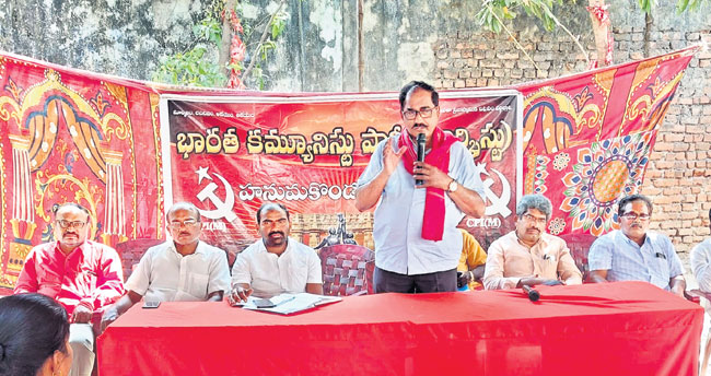 హనుమకొండ క్రైం, మార్చి 1: ప్రధాని మోదీ దేశ సంపదను తన స్నేహితులైన అదానీ, అంబానీలకు దోచి పెడుతున్నాడని, ప్రజలు వీరి ఆగడాలను గుర్తిస్తున్నారని సీపీఎం రాష్ట్ర కార్యదర్శి తమ్మినేని వీరభద్రం మండిపడ్డారు. బుధవారం హనుమకొండలోని సీపీఎం జిల్లా కార్యాలయంలో జిల్లా కమిటీ సభ్యులతో విస్తృత సమావేశం నిర్వహించారు. ఈ సందర్భంగా తమ్మినేని వీరభద్రం మాట్లాడారు. బీజేపీ ప్రభుత్వం అనుసరిస్తున్న ప్రజావ్యతిరేక విధానాలపై అన్నివర్గాల ప్రజలు పోరాటాలకు సిద్ధం కావాలని పిలుపునిచ్చారు. బీజేపీ ప్రభుత్వం దేశంలో మత విద్వేషాలను రెచ్చగొడుతూ రాష్ట్రంలో పాగా వేయాలని చూస్తుందని, మత రాజకీయాల ఆటలు చెల్లవని హెచ్చరించారు. కార్మిక, కర్షక, ప్రజావ్యతిరేక విధానాలను ప్రజల్లోకి తీసుకెళ్లేందుకు ఈ నెల 15న వరంగల్ నగరంలో నిర్వహించే రాజకీయ జాతాకు ప్రజలు పెద్దఎత్తున హాజరు కావాలని పిలుపునిచ్చారు.