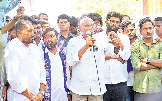 మంత్రి కేటీఆర్ పదవికి రాజీనామా చేయాలని డిమాండ్ చేశారు. వర్సిటీల్లోని ఖాళీలను భర్తీ చేయాలని, నిధులను విడుదల చేయాలని డిమండ్ చేశారు. సీఎం కేసీఆర్ తన మిత్రులకు ప్రైవేట్ వర్సిటీలను కట్టబెట్టి రాష్ట్రంలో విద్యను వ్యాపారం చేస్తున్నారని మండిపడ్డారు. పేద, దళిత వర్గాలకు విద్యను దూరం చేసే కుట్రలు చేస్తున్నారని ధ్వజమెత్తారు. రానున్న రోజుల్లో కేసీఆర్కు బుద్ధి చెప్పాలని పిలుపునిచ్చారు. బహుజనులు ఐక్యంగా రాజ్యాధికారాన్ని సాధించాలని ఉద్బోధించారు. సమస్యలపై పోరాడితే కేసులతో బెదిరిస్తున్నారని మండిపడ్డారు. నిరుద్యోగ యువత ఆత్మహత్యలు చేసుకోవద్దని హితువు పలికారు. ఈ కార్యక్రమంలో కేయూ జాక్ చైర్మన్ ఇట్టబోయిన తిరుపతియాదవ్, గుగులోత్ రాజునాయక్, ఇ.విజయ్కన్నా, బి.నరసింహారావు, కాడపాక రాజేందర్, ఓంటేరు చక్రి, బొల్లె మధుకర్, కల్లెపల్లి ప్రశాంత్, బొట్ల తేజ, అరెగంటి నాగరాజు, రమేశ్, కాశినాథ్, బీఎస్సీ జిల్లా నాయకులు వెంకటేశ్ చౌహన్, మఽధారపు రవికుమార్, మంద శ్యామ్, శనిగరపు రాజు, బి.సారయ్య, పొన్న భిక్షపతి, వేణుగోపాల్, సాజన్, గడ్డం రాజేశ్, మహిళ నాయకులుఅడ్లూరి పద్మ, జన్ను నిలీమ తదితరులు పాల్గొన్నారు.