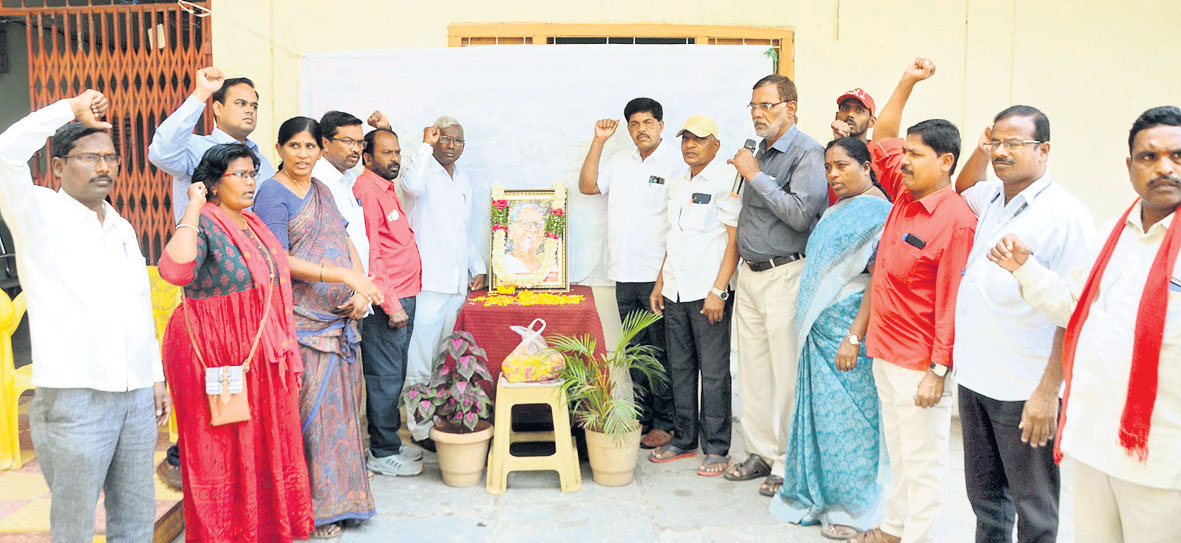 నల్లగొండటౌన, మార్చి 19: తెలంగాణ సాయుధ పోరాట యోధురాలు మల్లు స్వరాజ్యం మృతి సీపీఎం, ప్రజా ఉద్యమాలకు తీరని లోటని సీపీఎం జిల్లా ప్ర ధాన కార్యదర్శి ముదిరెడ్డి సుధాకర్రెడ్డి పేర్కొన్నారు. మల్లు స్వరా జ్యం ప్రథమ వర్ధంతి సందర్భంగా దొడ్డి కొమురయ్య భవనంలో ఆదివారం నిర్వహించిన కార్యక్రమంలో ఆమె చిత్రపటానికి పూలమాలలు వేసి ఘనంగా నివాళులర్పించారు. అనంతరం జరిగిన సభలో సుధాకర్రెడ్డి మాట్లాడుతూ మల్లు స్వరాజ్యం కమ్యూనిస్టు సిద్ధాంతాలను దృఢంగా నమ్మి 16 ఏళ్ల వయస్సులో ఉద్యమంలోకి వచ్చారని గుర్తు చేశారు. తెలంగాణలో భూమి, భుక్తి, వెట్టిచాకిరి, బానిసత్వానికి వ్యతిరేకంగా సాగిన ఉద్యమంలో ఆమె పాల్గొన్నారని పేర్కొన్నారు. తర్వాత గెరిలాల పోరాటంలో మహిళలను చేర్చుకోవడం, వారికి శిక్షణ ఇవ్వడంలో ఆమె కీలకపాత్ర పోషించారని కొనియాడారు. రెండు సార్లు ఎమ్మెల్యేగా గెలిచి ప్రజా సమస్యలపై తనదైన శైలిలో వాదన వినిపించినట్లు పేర్కొన్నారు. ఆమె పోరాట స్ఫూర్తిని పాలకులు అనుసరిస్తున్న విధానాలకు వ్యతిరేకంగా నేటి యువత ముందుకు సాగాలని పిలుపునిచ్చారు. మల్లు స్వరాజ్యం పెద్ద కుమారుడు, సీపీఎం జిల్లా కమిటీ సభ్యుడు మల్లు గౌతమ్రెడ్డి మాట్లాడు తూ ఆమె జీవితం నేటికి మా కుటుంబంతో పాటు సమాజానికి ఆ దర్శనీయమన్నారు. సీపీఎం జిల్లా కార్యదర్శి వర్గ సభ్యుడు సయ్యద్ హషం అధ్యక్షతన జరిగిన కార్యక్రమంలో సీపీఎం జిల్లా నాయకులు బండ శ్రీశైలం, పాలడుగు నాగార్జున, చిన్నపాక లక్ష్మీనారాయణ, పా లడుగు ప్రభావతి, మహమ్మద్ సలీం, పుచ్చకాయల నర్సిరెడ్డి, దం డంపల్లి సత్తయ్య, తుమ్మల పద్మ, పొట్టబత్తిని యాదగిరి, నగేష్, అ రుణకుమారి, అశోక్రెడ్డి, పరిపూర్ణచారి పాల్గొన్నారు.