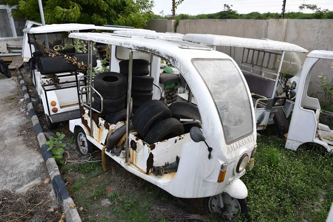 అమరావతి సచివాలయంలో గత ఐదేళ్లుగా నిరుపయోగంగా వదిలేయడంతో పాడైపోయిన బ్యాటరీ ఆటోలు, సైకిళ్లు. సచివాలయానికి వెళ్లే
