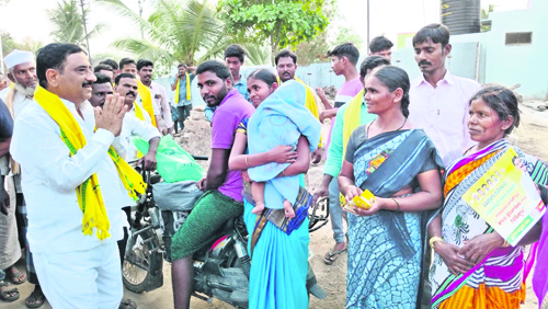 కణేకల్లు, మార్చి 18: రాయదుర్గంలో అభివృద్ధి చెందిన జీన్స పరిశ్రమను కణేకల్లుకు విస్తరిస్తామని మాజీ మంత్రి కాలవ శ్రీనివాసులు హామీ ఇచ్చారు. సోమవారం ఆయన కణేకల్లులోని సంజయ్నగర్లో ఎన్నికల ప్రచారాన్ని నిర్వహించి ఇంటింటికి వెళ్లి తనకు ఓటు వేసి గెలిపించాలని అభ్యర్థించారు. అనంతరం ఆయన మాట్లాడుతూ అత్యధికంగా ముస్లిం మైనార్టీలున్న కణేకల్లులో గతంలో షాదీఖానా మంజూరు చేయించడమే కాకుండా రోడ్డు వెడల్పు కూడా చేయించామన్నారు. తుంగభద్ర ఎగువ కాలువ నీటి సమస్యను ఏ రైతు ఎదుర్కోకుండా తన హయాంలో చేశానన్నారు. అందరికీ అండగా ఉండి సక్రమంగా నీరు అందించేందుకు ఏర్పాట్లు చేశానన్నారు. భవిష్యత్తులో ఉపాధి అవకాశాలు మెరుగు పరచడానికి కృషి చేస్తానన్నారు. ఉచితంగా కుట్టుమిషన్లు అందించడమే కాకుండా స్కిల్ డెవలప్ మెంట్ ద్వారా నైపుణ్యాన్ని పెంచి జీవనోపాధిని మెరుగు పరుస్తానన్నారు. కణేకల్లు పంచాయతీలో రెండువేలకుపైగా మెజార్టీ సాధిస్తామన్నారు. కార ్యక్రమంలో టీడీపీ నాయకులు లాలెప్ప, ఆనంద్రాజ్, వేలూరు మరియప్ప, కళేకుర్తి సుదర్శన, బీటీ రమేష్, ఎస్కే మల్లికార్జున, షేక్ముజ్జు, బాయినేని నవీన, మాబుసాబ్, చాంద్బాషా, కురుబ నాగరాజు, చంద్రశేఖర్గుప్తా, అనిల్, వెంకటేశులు, శ్రీకాంత, కిషోర్, జలంధర్రెడ్డి, జయశీలారెడ్డి, మారుతి, సక్లైన, నరేష్, కృష్ణారెడ్డి, సూరి, అంజిబాబు, ఎల్లప్ప, ఆంజినేయులు, ప్రకాష్, వరుణ్, జనసేన నాయకులు రవి, రామ్ పాల్గొన్నారు.