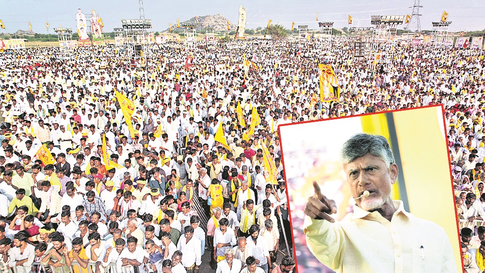 ఉమ్మడి జిల్లాను తాను ఎక్కువగా అభిమానిస్తానని చంద్రబాబు అన్నారు. తన గుండెకు దగ్గరగా ఉండే జిల్లా అనంతపురం అని అన్నారు. ఒకప్పుడు వర్షం పడక పంట రాకపోతే మొట్టమొదటిసారి వేరుశనగ పంటకు ఇనపుట్ సబ్సిడీ అందించి, రైతాంగాన్ని ఆదుకున్నామని అన్నారు. కరువు ఏర్పడినప్పుడు పశువుల మేపుకునేందుకు రైతులకు క్యాంపులు పెట్టామని గుర్తు చేశారు. అప్పటి నుంచే జిల్లాకు నీరు తీసుకురావాలనే ఆకాంక్ష పెరిగిందని అన్నారు. ఆ క్రమంలోనే హంద్రీనీవాను తీసుకొచ్చామని అన్నారు. ప్రతి ఎకరానికీ నీరిచ్చి, పేదరికం లేకుండా చేసి, పొలంలో బంగారం పండించే వరకు రైతులకు తాను అండగా ఉంటామని చంద్రబాబు అన్నారు. అధికారంలోకి రాగానే చేసి చూపిస్తానని అన్నారు. ‘ఈ సారి ఎన్నికల్లో మీరిచ్చే ఫలితాలు జగనకు దిమ్మతిరగాలి’ అని ప్రజలతో అన్నారు. ఉమ్మడి జిల్లాలో 14 అసెంబ్లీ స్థానాలు, రెండు ఎంపీ స్థానాలలో టీడీపీ, జనసేన కూటమి అభ్యర్థులను గెలిపించాలని కోరారు. టీడీపీ జెండా ఎగరాలి.. వైసీపీ జెండా భూస్థాపితం కావాలి అని అన్నారు.