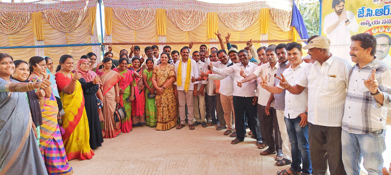 ములకలచెరువు, మార్చి 17: కష్టపడి పనిచేస్తాం...తంబళ్లపల్లె నియోజక వర్గ టీడీపీ అభ్యర్థి అయిన తమ స్నేహితుడు దాసరిపల్లి జయచంద్రా రెడ్డిని గెలిపించుకుంటామని పూర్వ విద్యార్థులు స్పష్టం చేశారు. స్థానిక జడ్పీ హైస్కూల్లో దాసరిపల్లి జయచం ద్రారెడ్డితో పాటు 1991-92 సం వత్సరంలో పదో తరగతి చదువుకున్న పూర్వ విద్యార్థులు ఆదివారం ములకలచెరువులోని పార్టీ కార్యాలయంలో కలుసుకున్నారు. తమ మిత్రుడికి తంబళ్లపల్లె ఎమ్మెల్యే అభ్యర్థిగా అవకాశం వచ్చినందుకు 32 ఏళ్ల తురువాత మళ్ళీ ఇప్పుడు కలిశారు. తమతో పాటు చదువుతున్న స్నేహితుడు జయచంద్రారెడ్డికి తంబళ్ళపల్లె టీడీపీ అభ్యర్థిగా అవకాశం రావడం ఎంతో సంతోషంగా ఉందని, పార్టీల కతీతంగా విజయం సాధించేందుకు తమ వంతు శ్రమిస్తామని వెల్లడించారు. ప్రచా రంలో కూడా పాల్గొని తమతో పాటు తెలిసిన వారికి, బంధువులకు, కుటుంబీ కులకు చెప్పి ఓట్లు వేయిస్తామని హామీ ఇచ్చారు. తమ స్నేహితుడ్ని గెలిపించుకునేందుకు బాధ్యతగా తీసుకుంటామని చెప్పారు. సుమారు 60 మందికి వరకు స్నేహితులు అందరూ కలిసి వచ్చి మద్దతుగా నిలిచారు. తన స్నేహితులు మద్దతు ప్రకటించండంతో జయచంద్రారెడ్డి ఆనందానికి అవధులు లేకుండా పోయింది. దీంతో పార్టీ కార్యాలయం వద్ద సందడి వాతావరణం నెలకొంది. ఈ కార్యక్రమాల్లో పూర్వ విద్యార్థులు కల్పనరెడ్డి, సుజాత, రాజేశ్వరి, షాజహాన, భవానీ, అయిషా, హరిత, అమరావతి, లక్ష్మీ, కళావతి, వాణి, బొగ్గు మునీర్, అయూబ్, రామకృష్ణ, జాన, రమణప్ప, చంద్రశేఖర్, మాధవరెడ్డి, రియాజ్, జయ చంద్రా, షామీర్, రమణ, మహేష్రెడ్డి, నాగభూషణరెడ్డి, వెంకట్రామన తదితరులు పాల్గొన్నారు.