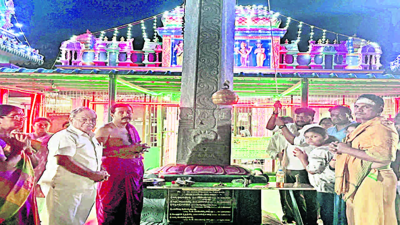 హనుమాన్జంక్షన్ : కార్తీకమాసం ప్రారంభం సందర్భంగా శనివారం స్థానిక నూజివీడు రోడ్డులోని లక్ష్మీవేంకటేశ్వరస్వామి దేవస్థానంలో పూజలు ప్రారంభించారు. ఆలయంలో స్వామివారికి ప్రత్యేక పూజా కార్యక్రమాలు నిర్వహించిన అనంతరం ఆలయ ట్రస్టి కాకాని బాబు, తవ్వా పూర్ణచంద్రరావు, ఈవో శ్రీనివాస్ పర్యవేక్షణలో అర్చకులు చక్రావధానుల సీతారామాచార్యులు ఆలయధ్వజ స్తంభం వద్ద ఆకాశ దీప ప్రజ్వలనతో కార్తీక మాస పూజా కార్యక్రమాలు ప్రారంభించారు. పలువురు భక్తులు పాల్గొని తీర్థ ప్రసాదాలు స్వీకరించారు.