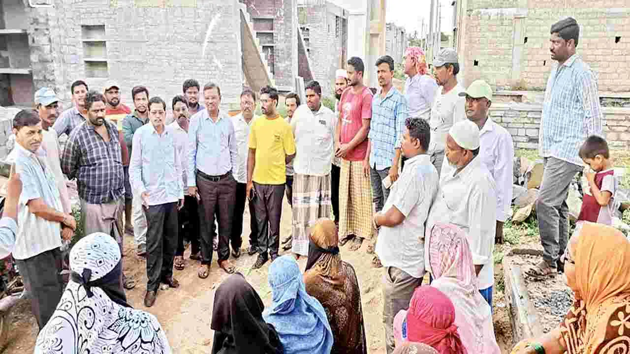 చాగలమర్రి, సెప్టెంబరు 4: పక్కా గృహాల నిర్మాణ పనులను వేగవంతం చేయాలని జిల్లా హౌసింగ్ పీడీ వెంకటసుబ్బయ్య అన్నారు. బుధవారం చాగలమర్రిలోని నారాయణపల్లె రహదారిలోగల లేఔట్లలో నిర్మించుకున్న పక్కా గృహాలను పరిశీలించారు. లబ్ధిదారుల సమస్యలను అడిగి తెలుసుకున్నారు. బేస్మెట్ వేసుకున్న వారు డిసెంబరు 24వ తేదీ లోపు గృహాలు పూర్తి చేసుకోవాలని సూచించారు. చాగలమర్రి మండలంలో 2,316 గృహాలు మంజూరుకాగా 733 గృహాలు పూర్తయ్యాయని తెలిపారు. లబ్ధిదారులకు 90 రోజులపాటు ఉపాధి పని దినాలు కల్పించాలని అన్నారు. 298 గృహ లబ్ధిదారులకు ఉపాధి పని దినాలు కల్పించలేదని ఉపాధి సిబ్బందిపై ఆగ్రహం వ్యక్తం చేశారు. 1.42 లక్షల పని దినాలకు గాను 69 వేల పని దినాలు మాత్రమే కల్పించారని, మిగిలిన పని దినాలు వేగవంతం చేయాలని, లేకపోతే చర్యలు తప్పవని హెచ్చరించారు. లేఔట్లలో విద్యుత్, తాగునీరు, రహదారి సౌకర్యం లేక ఇబ్బందులు పడుతున్నామని లబ్ధిదారులు పీడీతో మొరపెట్టుకున్నారు. కనీస సౌకర్యాలు లేక ఇబ్బందులు పడుతున్నామని అన్నారు. ఆయా శాఖల అధికారులతో చర్చించి సమస్యలు పరిష్కరిస్తామని తెలిపారు. ఆయన వెంట హౌసింగ్ ఈఈ హరిగోపాల్, డీఈ నాగరాజు, ఏఈ షఫివుల్లా, ఏపీవో నిర్మల, హౌసింగ్, ఉపాధి సిబ్బంది పాల్గొన్నారు.