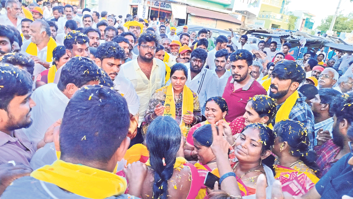ముండ్లమూరు, మే 10: మీ బిడ్డగా ఆదరించి అవకాశం ఇవ్వండి.. నియోజకవర్గ రూపురేఖలు మారుస్తానని టీడీపీ కూటమి అభ్యర్థి గొట్టిపాటి లక్ష్మి అన్నారు. సేవచేసే అవకాశం కల్పించినట్లయితే ఐదు సంవత్సరాల పాటు నియోజక వర్గంలోనే ఉండి ప్రతి గ్రామాన్ని ప్రజలు ఆశించిన విధంగా అభివృద్ధికి కృషి చేస్తానని చెప్పారు. శుక్రవారం రాత్రి ముండ్లమూరు, సింగనపాలెంలో ఆమె ఎన్నికల ప్రచారం నిర్వహించారు. ఈసందర్భంగా ఆమెకు బ్రహ్మరథం పట్టారు. భారీ గజమాలలతో ఘనంగా సన్మానించారు. ఈసందర్భంగా గొట్టిపాటి లక్ష్మి మాట్లాడుతూ ముండ్లమూరు మండలానికి, తమ కుటుంబానికి 40 సంవత్సరాలుగా విడదీయరాని అనుబంధం ఉందన్నారు. తన తాత స్వర్గీయ గొట్టిపాటి హనుమంతరావు, తన తండ్రి గొట్టిపాటి నర్సయ్య, తన బాబాయి గొట్టిపాటి రవి కుమార్లు ఎంతో అభివృద్ధి చేసి మండలాన్ని అభివృద్ధిలో అగ్రగామిగా నిలిపారన్నారు. తనను గెలిపించినట్లయితే ఐదు సంవత్సరాల్లో ప్రతి గ్రామాన్ని నెంబరు వన్గా తీర్చిదిద్దుతానని చెప్పారు.