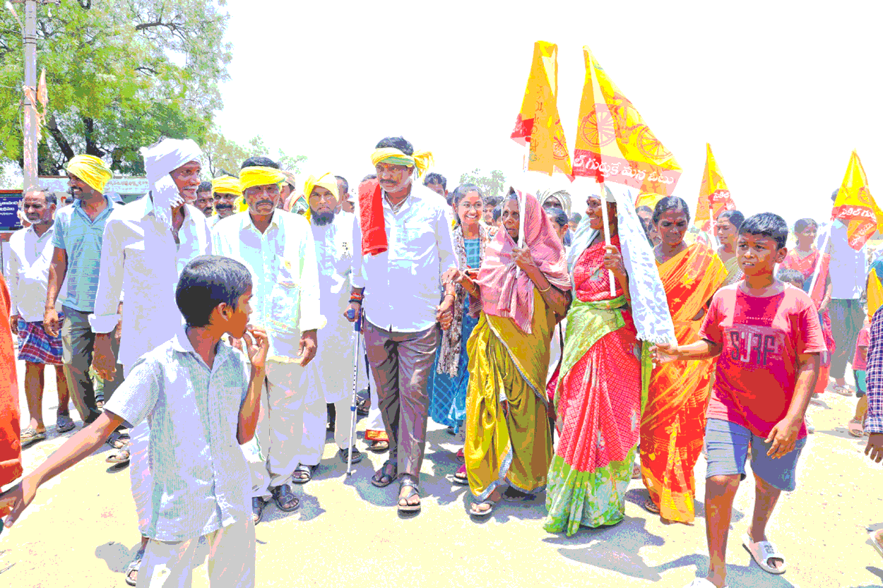 తర్లుపాడు, ఏప్రిల్ 28: వెలిగొండ ప్రాజె క్టు పూర్తయితేనే సాగు, తాగునీరు అందు తుందని వెలిగొండ ప్రాజెక్టుతోనే పశ్చిమ ప్రకాశం అభివృద్ధి చెందుతుందని మార్కా పురం టీడీపీ ఎమ్మెల్యే అభ్యర్థి కందుల నారా యణరెడ్డి అన్నారు. మండలంలోని మీర్జ పేట, చెన్నారెడ్డిపల్లె, తర్లుపాడు, రాగి సము ద్రం, కలుజువ్వల పాడులో కందుల ఎన్నికల ప్రచారం నిర్వహించారు. ఈ సందర్భంగా ఆయన మాట్లాడుతూ.. వైసీపీ ప్రభుత్వం ప్రజల ను మోసం చేసేందుకు ప్రాజెక్టు పూర్తి కాకుండానే శిలాఫలకాలు వేసుకొని ప్రజలను మభ్య పెట్టేందుకు ప్రయత్నిస్తోందన్నారు. టీడీపీ అధికారంలోకి వచ్చిన వెంటనే రెండేళ్ల లోపు పూర్తిగా వెలిగొండ ప్రాజెక్టును పూర్తిచేసి ప్రతి ఎకరాకు సాగు, తాగునీరు అందించేందుకు కృషి చేస్తామన్నారు. మార్కాపురం జిల్లా చేయకుండా వైసీపీ నాయకులు కుట్రలు చేశారన్నారు. మార్కాపురం జిల్లా అయితే ఈ ప్రాంతం ఎంతో అభివృద్ధి అవుతుందన్నారు. గతంలో చంద్రబా బు జిల్లా చేస్తారని హామీ ఇచ్చారన్నారు. తనకు ఒక్క అవకాశం ఇస్తే మార్కాపురం నియోజక వర్గాన్ని అన్ని రంగాల్లో అభివృద్ధి చేసి చూపిస్తా నని కందుల అన్నారు. వైసీపీ ప్రభుత్వం చేసిన అరాచకాలను ప్రజలకు వివరించారు. ఒంగోలు పార్లమెంట్ టీడీపీ అభ్యర్థి మాగుంట శ్రీనివాసులరెడ్డి జిల్లాలో గత 35 ఏళ్ల నుంచి ఎన్నో సేవా కార్యక్రమాలు నిర్వహించారన్నారు. ప్రస్తుత వైసీపీ ఎంపీ అభ్యర్థి బాగోతం ఏమిటో ప్రజలకు తెలుసన్నారు. రానున్న ఎన్నికల్లో తనకు, మాగుంట శ్రీనివాసులరెడ్డికి సైకిల్ గుర్తుపై ఓటు వేసి గెలిపించాలని ప్రజలను అభ్యర్థించారు. కార్యక్రమంలో టీడీపీ మండల అధ్యక్షుడు ఉడుముల చిన్నపురెడ్డి, ఒంగోలు పార్లమెంట్ ఉపాఽధ్యక్షులు కంచెర్ల కాశయ్య, జడ్పీటీసీ మాజీ సభ్యుడు రావి బాసపతిరెడ్డి, మాజీ ఎంపీపీ పి.ఏసుదాసు, ఎంపీటీసీ మాజీ సభ్యుడు పి.గోపినాథ్ చౌదరి, నాయకులు రోశప్ప నాయుడు, గుర్రపుసాల నరసింహు లు, జి.సుబ్బయ్య, ఈర్ల వెంకటయ్య, కాళంగి శ్రీనివాసులు, ఆరికట్ల వెంకటేశ్వరెడ్డి, జనసేన పార్టీ మండలాధ్యక్షులు సేతుల శ్రీనివాసులు, బీజేపీ మండల పార్టీ అధ్యక్షులు గాయం లక్ష్మీరెడ్డి, పలువురు నాయకులు, కార్యకర్తలు పాల్గొన్నారు.