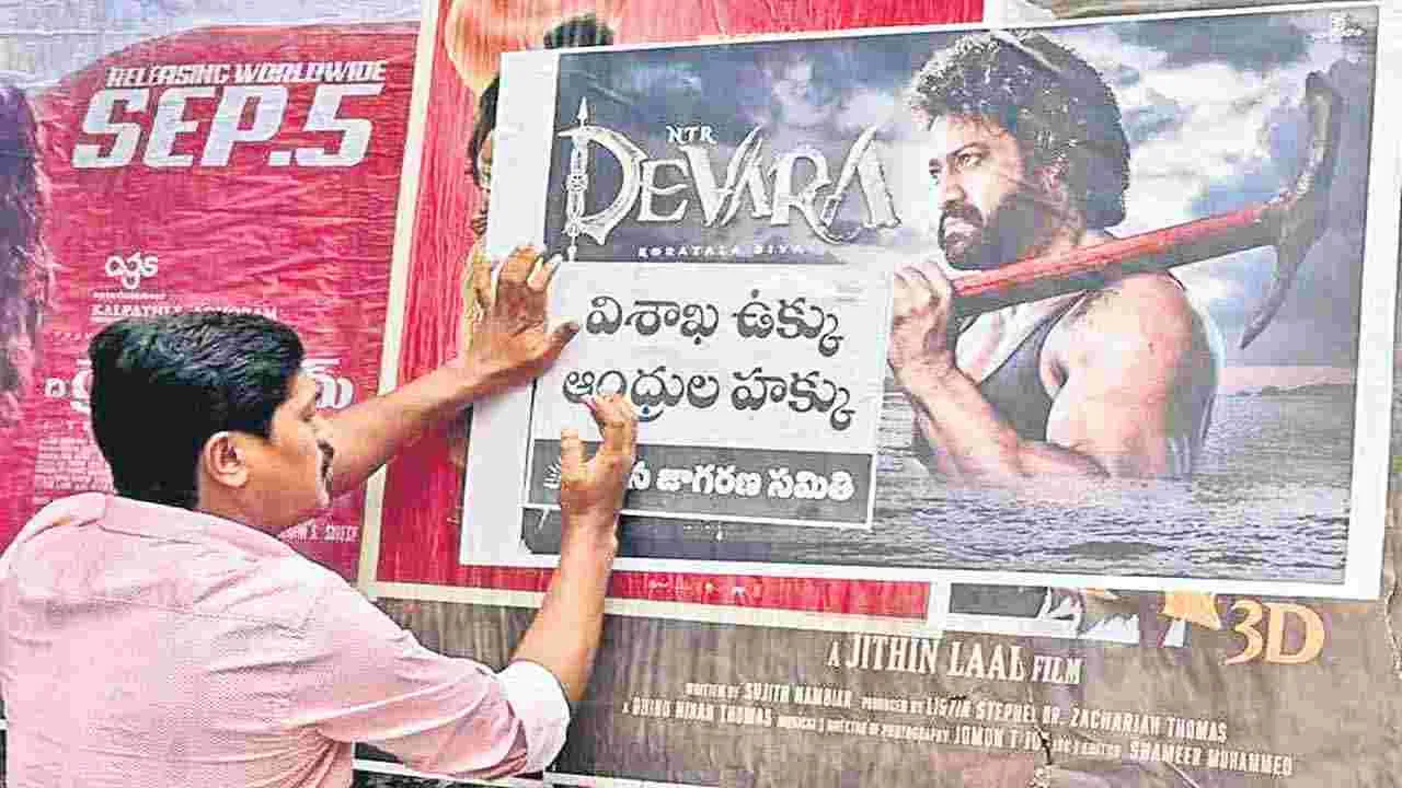 ‘దేవర’ పోస్టర్లపై ‘సేవ్ వైజాగ్ స్టీల్’