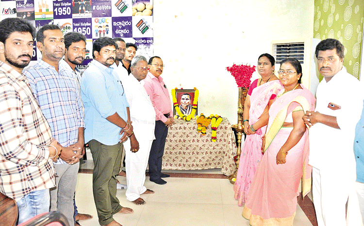 కలెక్టరేట్: అమరజీవి పొట్టి శ్రీరాములు జీవితం భావిత రాలకు ఆదర్శమని డీఆర్వో ఎం.గణపతిరావు అన్నారు. పొట్టి శ్రీరాములు జయంతి సందర్భంగా శనివారం కలెక్టర్ సమా వేశ మందిరంలో ఆయన చిత్రపటానికి పూలమాలలు వేసి నివాళులర్పించారు. ఈ సందర్భంగా ఆయన మాట్లాడుతూ.. అనుకున్న లక్ష్యాలను సాధించేందుకు ప్రాణాలను కూడా ఫణంగా పెట్టిన మహోన్నత వ్యక్తి అని, ఆయన జీవితం ఎప్పటికీ అనుసరణీయమన్నారు. భాషా ప్రయుక్త రాష్ట్రా ఏ ర్పాటుకు తన ప్రాణాలను అర్పించిన అమరుడు పొట్టి శ్రీరాములు అని కొనియాడారు. కార్యక్రమంలో జిల్లా బీసీ వెల్ఫేర్ అధికారి ఇ.అనూరాధ, సహాయ అధికారి ఎల్.అప్పారావు, కార్యాలయ సిబ్బంది మమత, జి.గణేష్, శేఖర్, శంకర్ తదితరులు పాల్గొన్నారు.