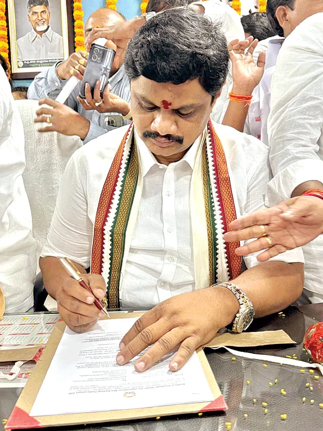 బూర్జ: ఏపీ మార్క్ఫెడ్ డైరెక్టర్గా ఆనెపు రామకృష్ణంనాయుడు శనివారం బాధ్యతలు చేపట్టారు. విజయవాడలో మార్క్ఫెడ్ రాష్ట్ర కార్యాలయంలో వేద పండితుల మంత్రోచ్ఛరణ నడుమ మేళ తాలాలతో ఎంతో అట్టహాసంగా బాధ్యతలు స్వీకరించారు. మార్క్ఫెడ్ ఎండీ మన్జీర్ జిలాన్ సమూన్ ఆధ్వర్యంలో అధికారులు పెద్ద ఎత్తున ఏర్పాట్లు చేశారు. ఈ సందర్భంగా రామకృష్ణంనాయుడు మాట్లాడుతూ.. తనపై ఎంతో నమ్మకంతో ఇంత పెద్ద బాధ్యతలు అప్పగించిన ముఖ్యమంత్రి చంద్రబాబుకు రుణపడి ఉంటానని, తనకు ఇచ్చిన పదవికి వెన్నె తెచ్చేం దుకు కృషి చేస్తానన్నారు. రైతులకు పూర్తిస్థాయిలో ఎరువులు అందేలా చర్యలు చేపడతానన్నారు.