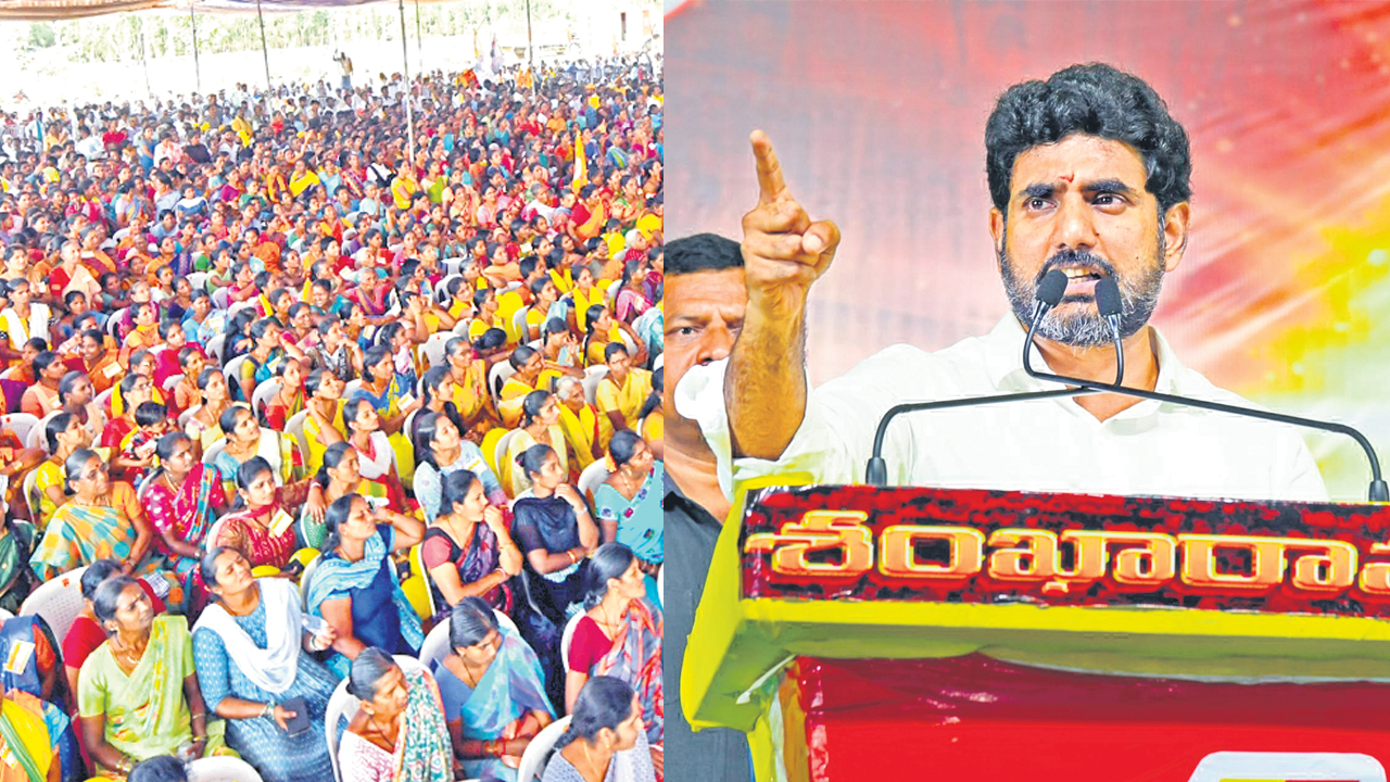 మాడుగుల/నర్సీపట్నం, ఫిబ్రవరి 20(ఆంధ్రజ్యోతి): సీఎం జగన్ ఉత్తరాంధ్ర ప్రాంతానికి పట్టిన దరిద్రమని టీడీపీ జాతీయ ప్రధాన కార్యదర్శి లోకేశ్ ధ్వజమెత్తా రు. మూడు రాజధానులంటూ మూడు ముక్కలాట ఆడుతున్నారన్నారు. పేదలు, పెత్తందారులకు మధ్య యుద్ధమని ఆయన పదే పదే అంటున్నాడని, నిజమే.. జగన్ రూ.లక్ష కోట్లు ఆస్తి ఉన్న పేదవాడని ఎద్దేవా చేశారు. శంఖారావం కార్యక్రమంలో భాగంగా మంగళవారం అనకాపల్లి జిల్లా మాడుగుల మండలం సురవ రం, నర్సీపట్నం, పాయకరావుపేట నియోజకవర్గంలో ని కోటవురట్లలో జరిగిన సభల్లో మాట్లాడారు. రానున్న ఎన్నికలు జగన్ అహంకారానికి, ప్రజల ఆత్మగౌరవానికి మధ్య యుద్ధమన్నారు. పాఠశాలల విలీనం నిర్ణయం తో పేద పిల్లలను ఆయన చదువుకు దూరం చేశాడని విమర్శించారు. దేశంలో డ్రాపౌట్లు 12.6 శాతం ఉంటే, దక్షిణ భారతంలో అత్యధికంగా ఏపీలోనే 16.3 శాతం ఉందని చెప్పారు. టీడీపీ-జనసేన అధికారంలోకి వస్తే 117 జీవో(పాఠశాలల విలీనానికి ఉద్దేశించినది) రద్దు చేస్తామని హామీ ఇచ్చారు. టీడీపీ-జనసేన ప్రభుత్వం వస్తే సంక్షేమ పథకాలు కట్ చేస్తారని వలంటీర్ల ద్వా రా తప్పుడు ప్రచారం చేస్తున్నారని.. ప్రజలెవరూ నమ్మొద్దని కోరారు. ఇంకా ఏమన్నారంటే..