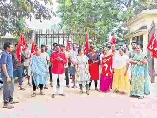 జీవీఎంసీ జోనల్ కార్యాలయం ఎదుట కార్మికుల ధర్నా