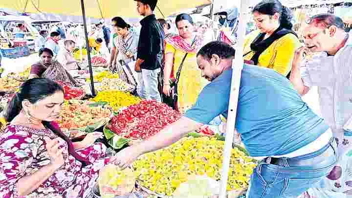నగరంలో వర్తకులు కొందరు...భక్తులను దోచుకుంటున్నారు. శ్రావణ మాసంలో రెండో శుక్రవారం అత్యధికులు వరలక్ష్మి వ్రతం చేసుకుంటారు. ఈ పూజకు అమ్మవారిని పూలతో అలంకరించి అన్ని రకాల పండ్లను నైవేద్యంగా పెడతారు. స్థోమతకు తగ్గట్టు కొత్త బంగారు నగలు కొని అలంకరిస్తారు. ఈ నేపథ్యంలో గురువారం వ్యాపారులు పూజా సామగ్రి ధరలు అమాంతం పెంచేశారు. రైతుబజార్లలో చామంతులు కిలో రూ.400 ధర పెట్టినా ఎవరూ ఆ రేటుకు ఇవ్వలేదు. గిట్టుబాటు కాదంటూ రూ.600 చొప్పున విక్రయించారు. అలాగే యాపిల్స్ వంద రూపాయలకు మూడు, దానిమ్మ వందకు రెండు, సీతాఫలాలు వందకు నాలుగు చొప్పున విక్రయించారు. అరటి పండ్ల వ్యాపారులైతే మరీ దారుణంగా రేటు పెంచేశారు. డజను చిన్న అరటిపండ్లు రూ.100కు అమ్మారు. రైతుబజార్లలో రూ.70 పెట్టినా ఎవరూ ఆ ధరకు విక్రయించలేదు. ధరలు ఎక్కువైనా మార్కెట్లు కొనుగోలుదారులతో కిటకిటలాడాయి.