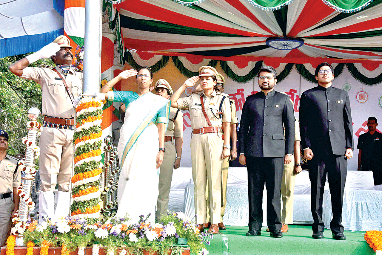 సమష్టి సహకారంతో జిల్లా అభివృద్ధికి బాటలు వేద్దామని కలెక్టర్ ఎస్.నాగలక్ష్మి పిలుపునిచ్చారు. పోలీస్ పరేడ్ గౌండ్లో నిర్వహించిన గణతంత్ర దినోత్సవంలో ఆమె ప్రసంగించారు. ఎందరో మహానుభావుల త్యాగం, పోరాటం కారణంగా స్వాతంత్య్రం లభించిందన్నారు. జిల్లా ఆవిర్భావం తరువాత అనేక రంగాల్లో అభివృద్ధి చెందినట్లు వివరించారు. ప్రజా ప్రతినిధులు, ప్రజలు, వివిధ శాఖల అధికారుల సహకారం ద్వారా మరింత అభివృద్ధిని సాధిద్దామని పిలుపునిచ్చారు. జిల్లా మీదుగా జాతీయ రహదారుల నిర్మాణం జరుగుతున్నట్లు వెల్లడించారు. జిల్లాలో వైద్య కళాశాల, గిరిజన విశ్వ విద్యాలయం, ఫిషింగ్ జట్టీ, వివిధ ప్రభుత్వ భవన నిర్మాణాలు జరుగుతున్నాయన్నారు. చిరుధాన్యాల ద్వారా వ్యవసాయాన్ని లాభసాటిగా చేస్తున్నామన్నారు. ప్రకృతి సేద్యాన్ని ప్రోత్సహిస్తున్నట్లు తెలిపారు. మత్స్య భరోసా, విద్యా రంగంలో సంస్కరణలు చేపట్టామన్నారు. సొంత ఇంటి కళ నెరవేర్చేందుకు జగనన్న కాలనీల్లో ఇళ్ల నిర్మాణాలు చేస్తున్నామన్నారు. ఆసరా, చేయూత, సున్నావడ్డీ పథకాల ద్వారా జీవన ప్రమాణాలు పెంపొందిస్తున్నామ న్నారు. రక్షిత మంచినీటిని అందించేందుకు వీలుగా జాతీయ జలజీవన్మిషన్ ద్వారా 2.98 లక్షల కొళాయి కనెక్షన్లు అందించామన్నారు. దీనికోసం ఇప్పటి వరకు రూ.978 కోట్లు ఖర్చు చేశామన్నారు. పరిశ్రమల కోసం ఎస్.కోట మండ లంలో 985.7 ఎకరాల ప్రభుత్వ భూమిని అందించినట్లు వివరించారు. ఇలా జిల్లాను అన్ని రంగాల్లో ముందంజలో ఉంచేందుకు నిరంతరం కృషి చేస్తున్నట్లు కలెక్టర్ తెలిపారు.