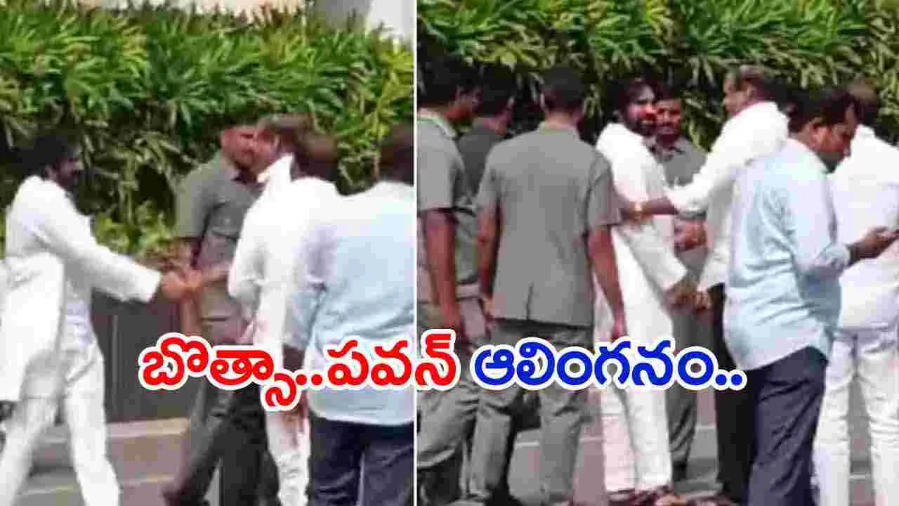 అమరావతి: ఏపీ అసెంబ్లీ ప్రాంగణంలో (AP Assembly Premises) శుక్రవారం ఉదయం ఆసక్తికర సన్నివేశం చోటు చేసుకుంది. వైఎస్సార్పీసీ నేత, మాజీ మంత్రి, మండలి ప్రతిపక్ష నేత బొత్స సత్యనారాయణ (Botsa Satyanarayana) , జనసేన అధ్యక్షుడు, ఉపముఖ్యమంత్రి పవన్ కళ్యాణ్ (Pawan Kalyan) ఇద్దరు ఒకరిని ఒకరు పలకరించుకుని.. అలిగనం చేసుకున్నారు.
