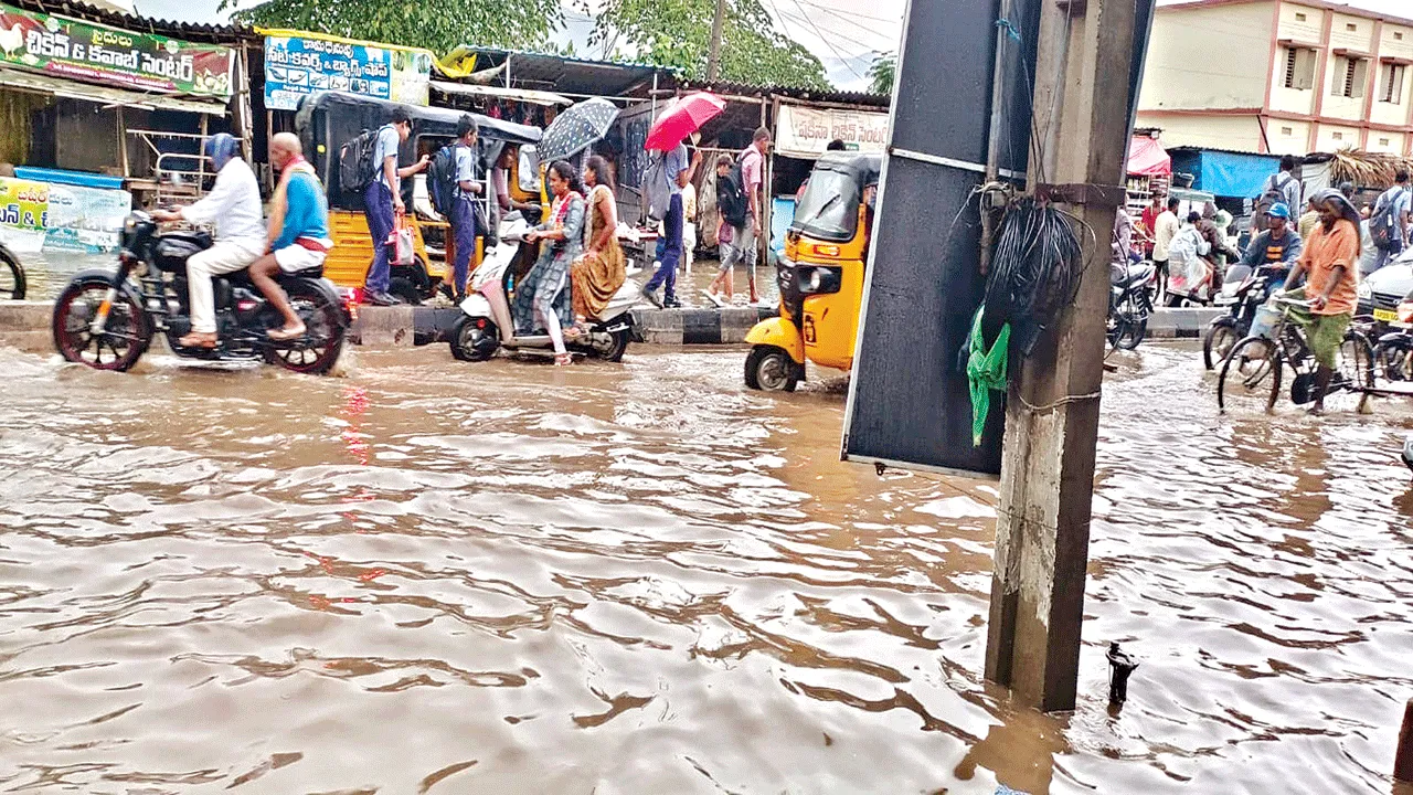 శృంగవరపుకోట పట్టణ పరిధిలోని విశాఖ-అరకు రోడ్డు చెరువును తలపించింది. మంగళవారం సాయంత్రం కురిసిన భారీ వర్షానికి రోడుపై వరద నీరు ఏరులా పారింది. స్థానిక దేవిబొమ్మ కూడలి నుంచి ఆకుల డిపో వరకు ఇదే పరిస్థితి. మోకాలిలోతు నీటిలో వాహనాలు నడిచాయి.