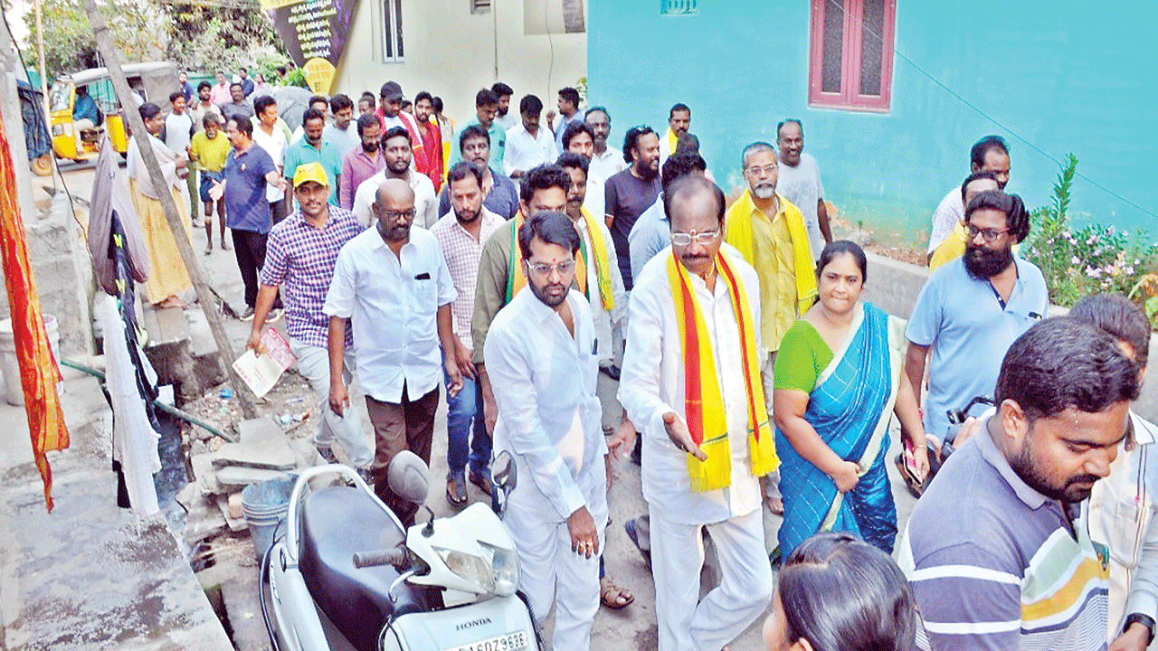 ఏలూరుటూటౌన్, ఏప్రిల్ 20 : చేతకాని పాలనతో జగన్ ప్రజల జీవితాలను తలకిందులు చేశారని, అన్నీ ఇబ్బందులేనని ఏలూరు టీడీపీ కూటమి అసెంబ్లీ అభ్యర్థి బడేటి చంటి అన్నారు. శనివారం ప్రజాసంకల్ప యాత్రలో భాగంగా 47వ డివిజన్లో ఆయన పర్యటించారు. ఇంటింటికీ వెళ్లి అందరినీ ఆప్యాయంగా పలకరి స్తూ సమస్యలు అడిగి తెలుసుకున్నారు. ఈ సందర్భంగా ఆయన మాట్లాడుతూ రోజురోజుకు కూటమికి ప్రజాదరణ పెరుగుతోందన్నారు. కూటమికి పెరుగుతున్న ప్రజాదరణను చూసి వైసీపీ నాయకులు ఓర్వలేకపోతున్నారన్నారు. అధికారంలోకి రాగానే సూపర్ సిక్స్ పథకాలను అమలు చేస్తామన్నారు. ఎండ సమయంలో కూడా ప్రజలు తనపై చూపుతున్న అభిమానానికి కృతజ్ఞతలు తెలిపారు. మన ప్రభుత్వం రాగానే మీ సమస్యలన్నీ పరిష్కరించి రుణం తీర్చుకుంటానన్నారు. వైసీపీ పతనానికి నాంది పడిందని ఈ ఎన్నికల్లో వైసీపీ అభ్యర్థులకు డిపాజిట్లు రావన్నారు. ప్రజలు తమ ఓటు హక్కు ద్వారా రాక్షస పాలనకు చరమగీతం పాడేందుకు నిర్ణయించుకున్నారన్నారు. కార్యక్రమంలో శివప్రసాద్, కాశీ నరేష్, దుర్గాభవాని, శ్రీనివాస్, మోజేష్, బాబ్జి, యోహాన్ తదితరులు పాల్గొన్నారు.