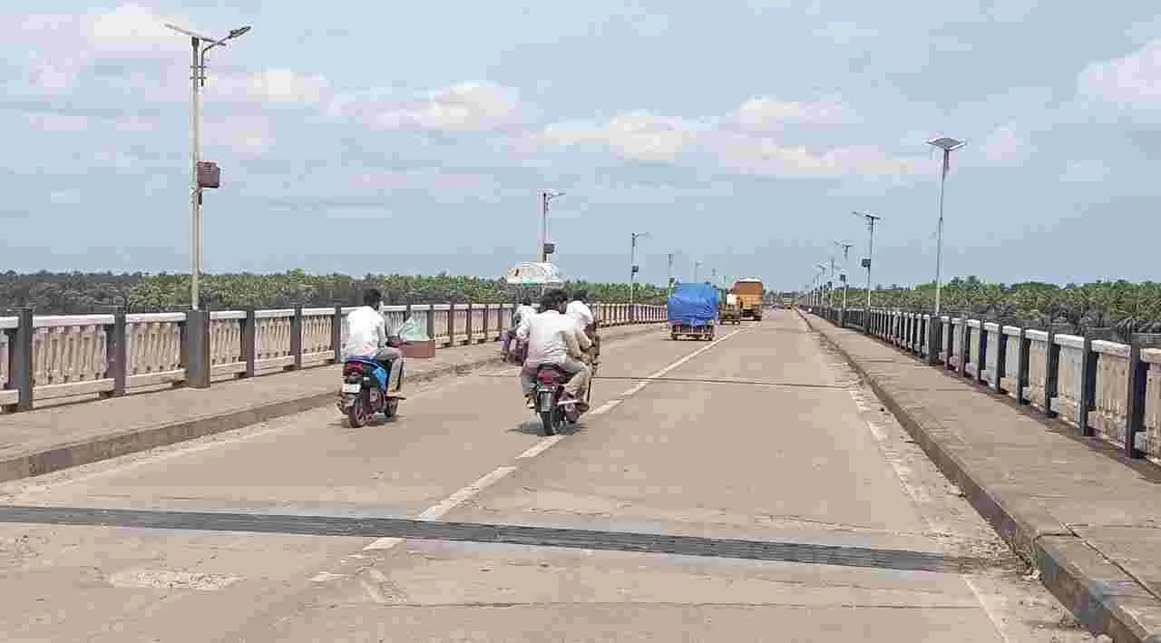 పశ్చిమ గోదావరి, అంబేడ్కర్ కోనసీమ జిల్లాలను అనుసంధానిస్తూ చించినాడ – దిండి గ్రామాల మధ్య వశిష్ఠ వారధిపై పగుళ్లు వాహనదారులను భయపెడుతున్నాయి.