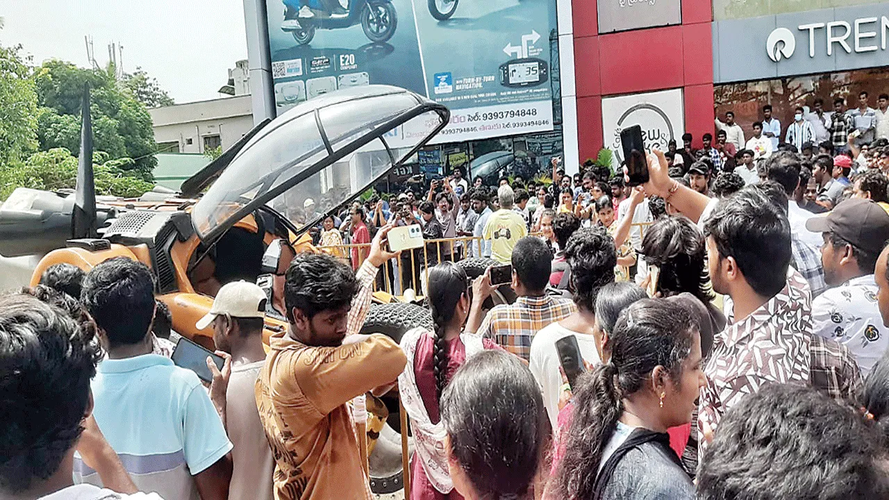 భీమవరం అర్బన్, జూలై 2: పాన్ ఇండియా స్టార్ ప్రభాస్ హీరోగా నటించిన కల్కి 2898 ఏడీ సినిమాలో ప్రభాస్ వినియోగించిన కారు (బుజ్జి)ను భీమవరం తీసుకొచ్చారు. అభిమానులకు చూపించేందుకు చిత్రబృందం భీమవరంలోని గీత మల్టీప్లెక్స్ ప్రాంగణంలో మంగళవారం ఉంచారు. దీనిని చూసేందుకు ప్రభాస్ అభిమానులు భారీగా తరలివచ్చి ‘బుజ్జి’ కారుతో సెల్ఫీలు దిగుతూ ఫిదా ఆయ్యారు.