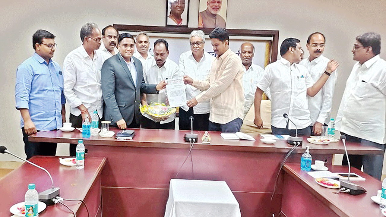 జంగారెడ్డిగూడెం, జూన్ 19 : ఎన్ఎల్ఎస్ పరిధిలోని ఐదు పొగాకు వేలం కేంద్రాల పరిధిలో అదనంగా పండించిన పొగాకును అపరాధ రుసుం లేకుండా వేలం కేంద్రాల్లో అమ్ముకునేందుకు అనుమతి ఇవ్వాలని రైతు సంఘ నాయకులు, రైతులు కోరారు. బుధవారం బుధవారం గుంటూరులోని పొగాకు బోర్డు చైౖర్మన్ అద్దంకి శ్రీధర్బాబునుఆయన కార్యాలయంలో మర్యాదపూర్వకంగా కలిసి వినతిపత్రం సమర్పించారు. ఈ సందర్భంగా ఆయన మాట్లాడుతూ ఇప్పటికే ఈ విషయంపై ఢిల్లీలోని వాణజ్య శాఖకు సిఫారసు చేశానని చెప్పారని రైతు సంఘం నాయకుడు పరిమి రాంబాబు పేర్కొన్నారు. రైతుల సౌకర్యార్ధం పట్టణంలోని రెండు వేలం కేంద్రాలకు ఒక కమ్యూనిటీ హాలు నిర్మించాలని ఛైర్మన్ను కోరినట్లు తెలిపారు. రైతు సంఘం నాయకులు, రైతులు వీవీఎస్ ప్రకాశరావు, కరాటం రెడ్డిబాబు, కూచిపూడి రమేష్, అట్లూరి సతీష్, గూడూరి నాగరాజు, కాకర్ల వివేకానంద, అడపా సత్యనారాయణ, ఇల్లూరి రాంబాబు, గద్దే శేషగిరిరావు, పిన్నమనేని మధుమోహన్ తదితరులు పాల్గొన్నారు.