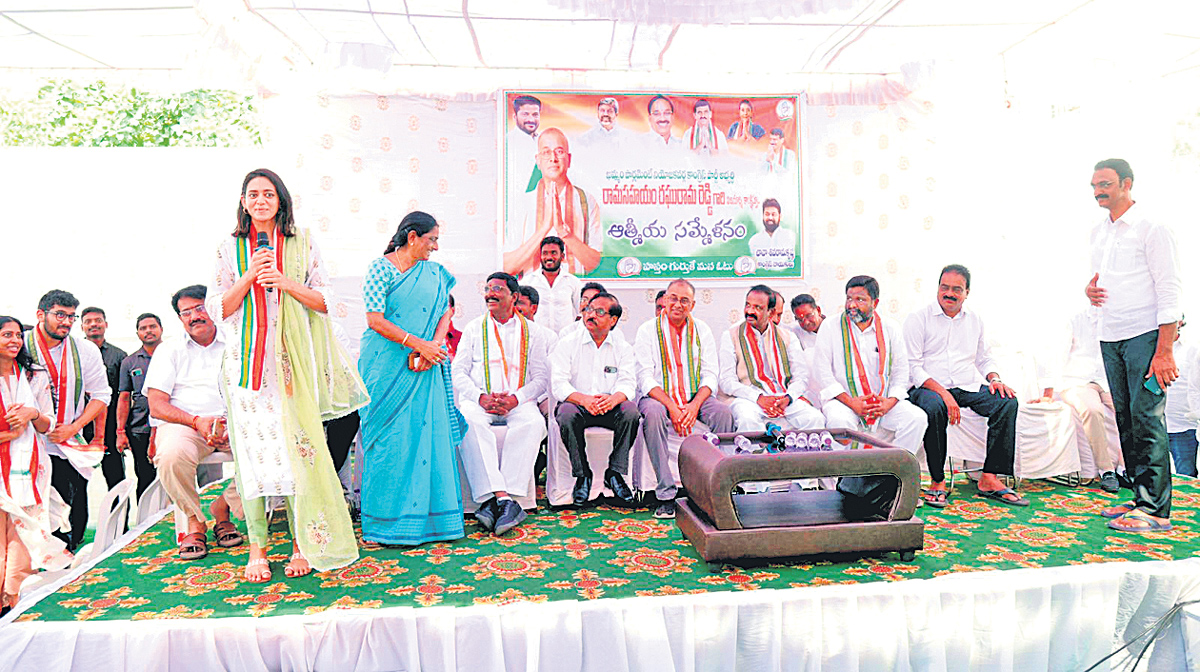 ఖమ్మం సంక్షేమవిభాగం, మే 1: ఖమ్మం లోక్సభ స్థానంలో కాంగ్రెస్ అభ్యర్థిగా పోటీలో ఉన్న రామసహాయం రఘురాంరెడ్డి విజయం కోసం ఆయన పెద్ద కోడలు, హీరో వెంకటేశ్ కుమార్తె ఆశ్రిత బుధవారం ప్రచారం చేశారు. ఖమ్మంలోని పోలీసు హౌసింగ్ కాలనీలో నిర్వహించిన ఆత్మీయ సమ్మేళనంలో ఆశ్రిత పాల్గొని తన మామగారైన రఘురాంరెడ్డికి ఓటు వేసి గెలిపించాలని కోరారు. తాము ఎల్లప్పుడూ ప్రజలకు అందుబాటులో ఉంటామని హామీ ఇచ్చారు. సమావేశంలో కాంగ్రెస్ నాయకులు బేబి స్వర్ణకుమారి తదితరులు పాల్గొన్నారు. ఇదిలావుండగా... ఈ నెల 7న వియ్యంకుడి కోసం హీరో వెంకటేశ్ సైతం ఖమ్మంలో ప్రచారం చేయనున్నారు.
