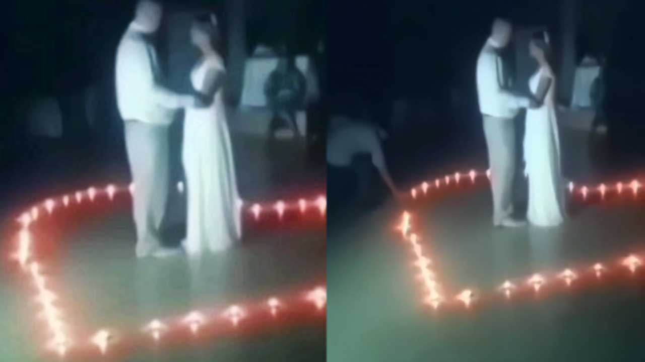 సోషల్ మీడియాలో ఓ వీడియో (Viral Video) తెగ వైరల్ అవుతోంది. ఓ ప్రేమ జంట కోసం స్నేహితులంతా కలిసి ఫొటోషూట్ను వినూత్నంగా ప్లాన్ చేస్తారు. ఇందుకోసం వారు లవ్ సింబల్ (Love symbol) ఆకారంలో దీపాలను ఏర్పాటు చేస్తారు. దీపాలన్నీ జిగేల్ జిగేల్మని వెలుగుతుండగా.. మధ్యలో ప్రేమ జంట (lovers) నిలబడి ఉంటుంది. ఈ క్రమంలో ప్రియుడు తన ప్రియురాలికి ముద్దు పెట్టబోతాడు. ఇంతలో తమాషా సంఘటన చోటు చేసుకుంటుంది. పక్కనే నిలబడి ఉన్న వారిలో ఓ వ్యక్తి.. సడన్గా ప్రేమికుల సమీపానికి వచ్చేస్తాడు.