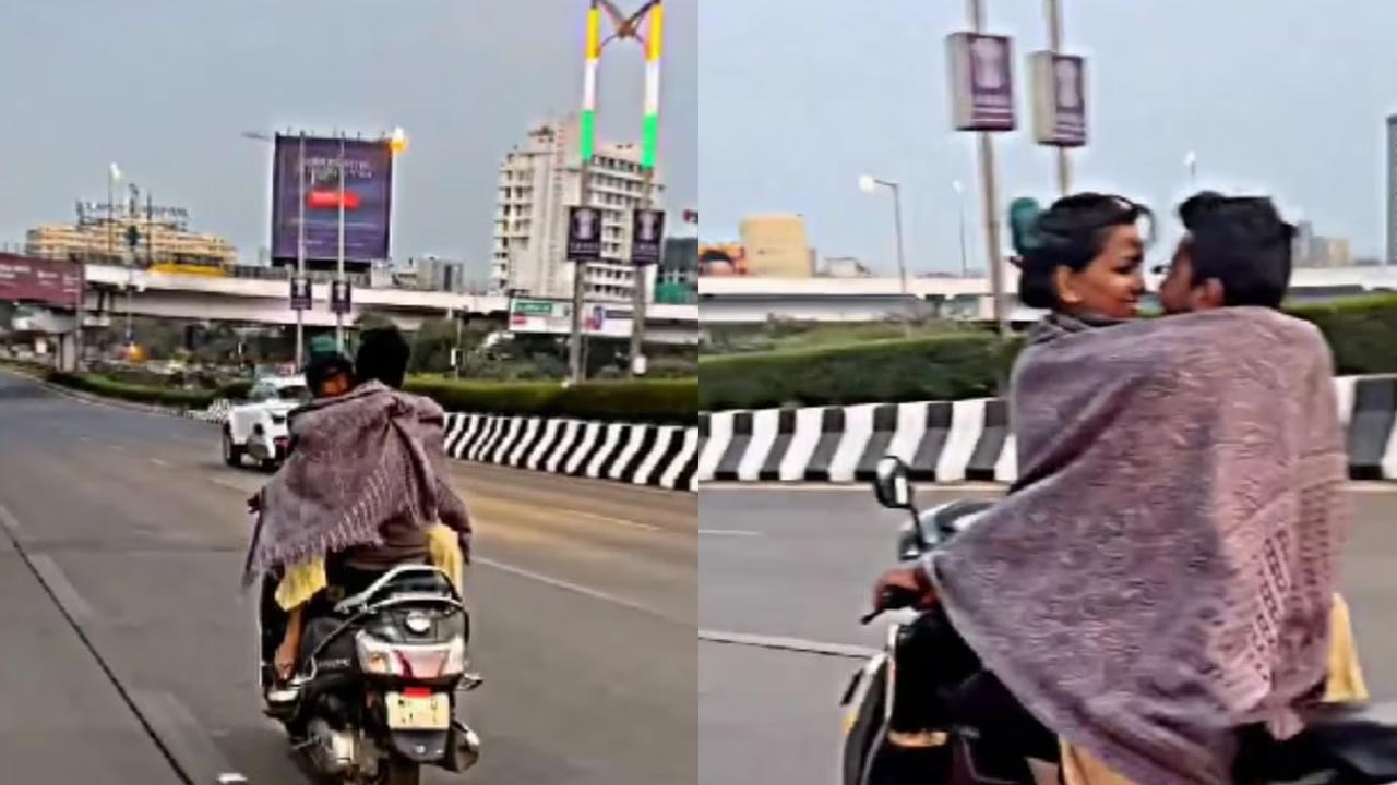 ముంబై (Mumbai) బాంద్రా వద్ద ఈ ఘటన జరిగింది. స్కూటీని భర్త నడుపుతున్నాడు. అతని ఒడిలో భార్య రివర్స్లో కూర్చొంది. ఇద్దరు శాలువా కప్పుకొని ఉన్నారు. ఆ జంట అలా ఉండగా మరొకరు వీడియో తీశారు. వీడియోలో కపుల్ గట్టిగా కౌగిలించుకొని కనిపించారు. ముద్దు కూడా పెట్టుకున్నారు. మరింత దగ్గర కూడా అయ్యారు. అలా రైడ్ చేస్తూ తన్మయత్వంతో ముందుకు సాగుతున్నారు. హెల్మెట్ కూడా పెట్టుకోకుండా ప్రయాణిస్తున్నారు. ఆ వీడియో సోషల్ మీడియాలో షేర్ చేయగా తెగ వైరల్ అవుతుంది. వీడియోను ఒకతను ముంబై పోలీసులకు ట్యాగ్ చేశాడు. ఆ జంటపై కఠిన చర్యలు తీసుకోవాలని కోరాడు.