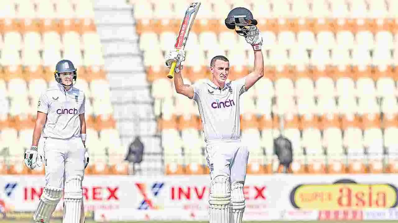 పాకిస్థాన్తో తొలి టెస్టులో ఇంగ్లండ్ చరిత్రాత్మక విజయంగా దిశగా దూసుకెళుతోంది. ఓవర్నైట్ స్కోరు 492/3తో గురువారం తొలి ఇన్నింగ్స్ కొనసాగించిన ఇంగ్లండ్.. ట్రిపుల్ సెంచరీ హీరో హ్యారీ బ్రూక్ (322 బంతుల్లో 29 ఫోర్లు, 3 సిక్స్లతో 317), ద్విశతక వీరుడు జో రూట్ (375 బంతుల్లో 17 ఫోర్లతో 262)...