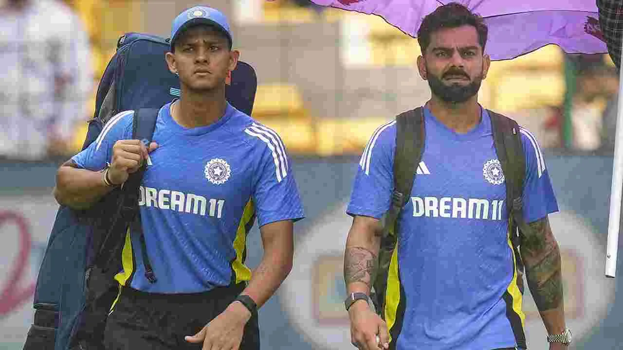 బెంగళూరు: ఎడతెరిపిలేని వర్షం కారణంగా భారత్-న్యూజిలాండ్ మధ్య తొలి టెస్ట్ మొదటి రోజు ఆట ఒక్క బంతి కూడా పడకుండానే రద్దయింది. బుధవారం ఉదయం నుంచే వాన కురుస్తుండడంతో మధ్యాహ్నం 2.30 గంటలకు తొలి రోజు ఆటను రద్దు చేస్తున్నట్టు ప్రకటించారు. కనీసం టాస్ వేయడానికి కూడా పరిస్థితులు సహకరించలేదు. మధ్యాహ్నం 2 గంటలకు అంపైర్లు పిచ్ను పరిశీలించడానికి వచ్చినప్పుడు.. వికెట్కు ఇరువైపులా తడిగా ఉన్నట్టు గమనించారు. ఆ సమయంలో మరోసారి భారీ వర్షం కురవడంతో ఆటను రద్దు చేశారు. రెండు రోజుల నుంచి ఎడతెరిపిలేని వర్షం కురుస్తుండడంతో హాక్-ఐ కెమెరాలను కూడా అమర్చలేదు. ఒకవేళ మ్యాచ్ జరిగే పరిస్థితులుంటే ఆ కెమెరాలను అమర్చడానికే మరో గంటన్నర సమయం పట్టేది. ప్రతికూల వాతావరణ పరిస్థితుల్లోనూ చెప్పుకోదగ్గ సంఖ్యలో ప్రేక్షకులు స్టేడియానికి వచ్చారు. వీరికి కోహ్లీ, యశస్వీ జైస్వాల్ నెట్ ప్రాక్టీ్సను చూసే చాన్స్ దక్కింది.