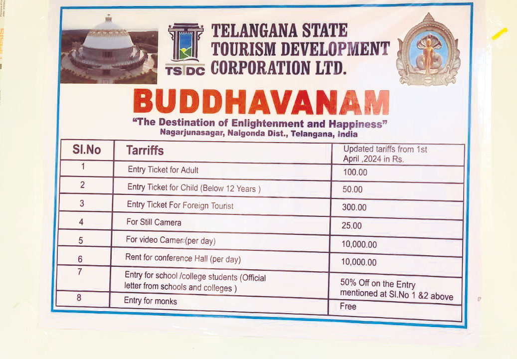 బుద్ధవనం ప్రవేశ టికెట్ ధరల పెంపు
