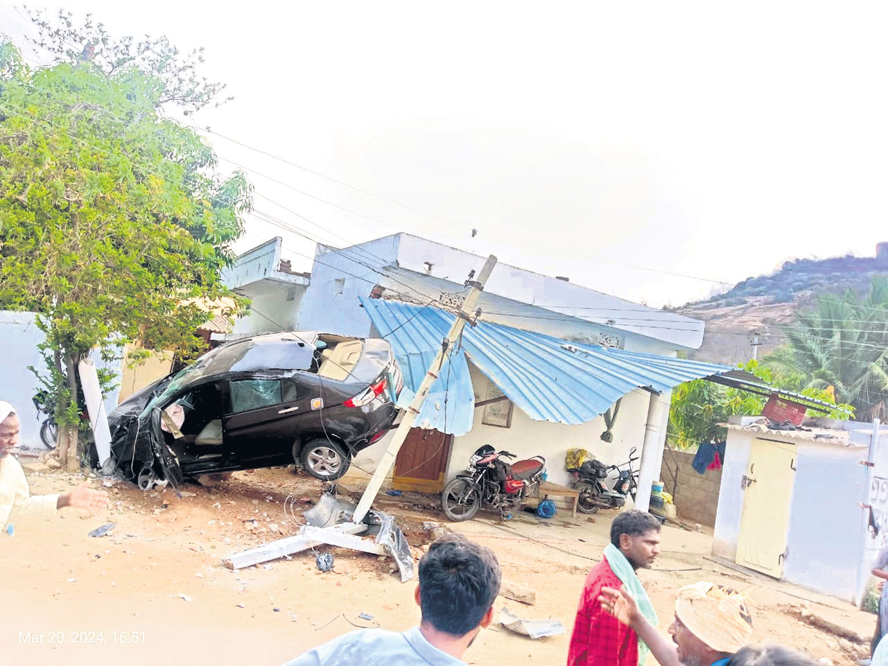 మర్రిగూడ, మార్చి 20: నల్లగొండ జిల్లా మర్రిగూడ మండలం వట్టిపల్లి గ్రామపంచాయతీ పరిధిలోని బట్లపల్లి గ్రామంలో బుధవారం కారు బీభత్సం సృష్టించింది. అదుపుతప్పిన ఆ కారు ఓ ఇంట్లో దూసుకెళ్లింది. ఈ ఘటనలో యువకుడు గాయపడ్డాడు. ఎస్ఐ రంగారెడ్డి, గ్రామస్థులు తెలిపిన వివరాల ప్రకారం... డ్రైవర్ లపంగి కారులో యశ్వంత్ మర్రిగూడ నుంచి నాంపల్లికి వెళ్తున్నాడు. బట్లపల్లి గ్రామానికి చేరుకోగానే అదుపుతప్పిన కారు సమీపంలో ఓ ఇంటి వైపు దూసుకెళ్లి ముందున్న షెడ్డును ధ్వంసం చేసింది. ఆ సమయంలో అక్కడ ముగ్గురు యువకులు ఉన్నారు. వారిలో ఒకరికి గాయాలయ్యాయి. కారు అతివేగంగా దూసుకెళ్లడంతో రేకుల షెడ్ పూర్తిగా ధ్వంసమైంది. షెడ్డులో ఉన్న రెండు బైకులు కూడా ధ్వంసమైయ్యాయి. కారు తగలడంతో ఇంటి పక్కనే ఉన్న విద్యుత్ స్తంభం కూడా ఒరిగింది. కారు డ్రైవర్ అతివేగంగా రావడంతో ఈ సంఘటన జరిగిందని ఎస్ఐ రంగారెడ్డి, గ్రామస్తులు తెలిపారు. ఇంటి యజమాని మాదగోని వెంకటయ్య ఫిర్యాదు మేరకు కేసు నమోదు చేసి దర్యాప్తు చేస్తున్నట్లు ఎస్ఐ తెలిపారు.
