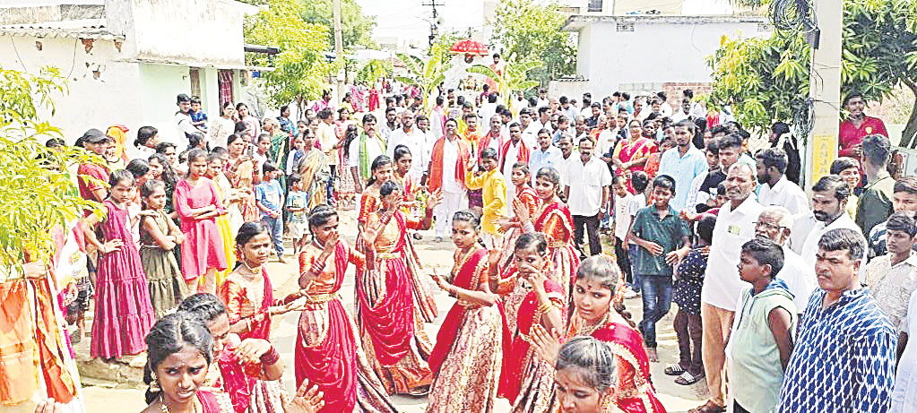 ఘట్కేసర్ రూరల్, మే 25 : వెంకటాపూర్ శ్రీ వెంకటేశ్వర స్వామి బ్రహ్మోత్సవాల్లో భాగంగా శనివారం ఉదయం స్వామివారి రథోత్సవం ఘనంగా జరిగింది. ప్రత్యేకంగా ఏర్పాటు చేసిన రథోత్సవంపై స్వామివారిని ప్రతిష్టించారు. భక్తుల కోలాటాలు మధ్య ఊరేగింపు కొనసాగింది. రథం ఇళ్ళ ముందుకు రాగానే బిందెలతో నీళ్ళు, సాకపెట్టి కొబ్బరికాయలు, పూలు, పండ్లు సమర్పించి మొక్కులు తీర్చుకున్నారు. చిన్నారులు, గ్రామస్తులు భక్తిపారవశంలో ముగినితేలారు. సాయంత్రం స్వామివారిని శేషవాహన సేవపై ఊరేగించారు. ఈ కార్యక్రమంలో ఆలయ కమిటీ చైర్మన్ ఉదారివేణుగోపాల్, ఈవో లగడపాటి భాగ్యలక్ష్మి, ఆలయ కమిటీ సభ్యులు కందుల నవీన్, నీరుడి శఽంకర్, లింగం, రామకృష్ణరెడ్డి, కట్ట శేఖర్, కళావతి, ఎంపీటీసీ నీరుడి రామారావు, మాజీ సర్పంచ్లు నీరుడి గీతాశ్రీనివాస్, దేశం బాల్రాజ్, బుర్ర వెంకటే్షగౌడ్, దేశం బాల్రాజ్, కట్ట సత్యనారాయణ, కుమార్, చింతపట్టి సత్తయ్య, తదితరులు పాల్గొన్నారు.