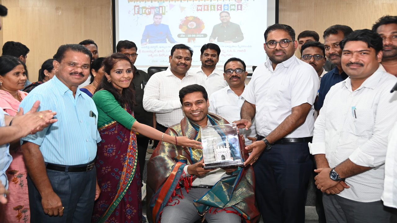 బదిలీపై వెళుతున్న కలెక్టర్ ముజమ్మిల్ఖాన్కు కొత్తగా వచ్చిన కలెక్టర్ కోయ శ్రీహర్ష, పలువురు అధికారులు ఘనంగా వీడ్కోలు పలికారు.