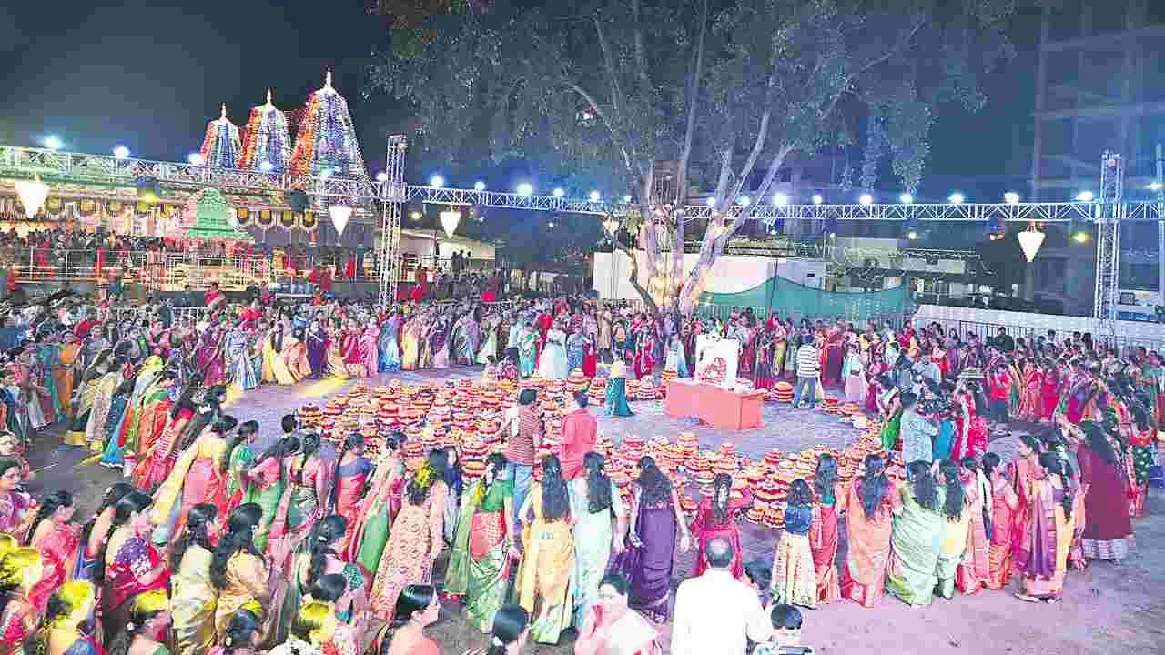 కరీంనగర్ కల్చరల్, అక్టోబరు 10: సద్దుల బతుకమ్మ వేడుకలు జిల్లా వ్యాప్తంగా గురువారం వైభవంగా జరిగాయి. నగరంలోని గంజ్, టవర్ వద్ద విభిన్న ఆకృతుల్లో వైవిద్యభరితంగా తీర్చిదిద్దిన బతుకమ్మలు ఆకట్టుకున్నాయి. చైతన్యపురి మహాశక్తి దేవాలయంలో మహిళలు అధిక సంఖ్యలో పాల్గొని బతుకమ్మ, దాండియా ఆటలతో హోరెత్తించారు. కార్యక్రమంలో కరీంనగర్ ఎంపీ, కేంద్ర మంత్రి బండి సంజయ్కుమార్, సతీమణి అపర్ణ పాల్గొన్నారు. రాంనగర్ రమాసత్యనారాయణ స్వామి ఆలయం ముందు డిప్యూటీ మేయర్ చల్ల స్వరూపారాణి, బీఆర్ఎస్ నగర అధ్యక్షుడు చల్ల హరిశంకర్ నేతృత్వంలో విస్తృత ఏర్పాట్లు చేశారు. ఎమ్మెల్యే గంగుల కమలాకర్ హాజరయ్యారు.. టవర్సర్కిల్ వద్ద గౌరిశెట్టి మునీందర్ అండ్ బ్రదర్స్ ఆధ్వర్యంలో హైండ్లూమ్ అంశంగా బతుకమ్మను రూపొందించి చేనేత కళాకారుల గొప్పదనాన్ని వివరించారు. హనుమాన్నగర్, సప్తగిరి కాలని, మార్క్ఫెడ్ గ్రౌండ్, భాగ్యనగర్ ప్రాంతాల్లో జరిగిన వేడుకల్లో ఎమ్మెల్యే గంగుల కమలాకర్ పాల్గొన్నారు. మంత్రి పొన్నం ప్రభాకర్ నివాసం ఎదుట కుటుంబ సభ్యులు, సమీప నివాస మహిళలు బతుకమ్మ ఆడారు. ఎమ్మెల్యే గంగుల కమలాకర్ నివాసంలో కుటుంబ సభ్యులు, స్థానిక మహిళలు బతుకమ్మ ఆడారు. ఎల్ఎండీ, ఎస్సారెస్పీ కెనాల్, పద్మనగర్, చింతకుంట, సీతారాంపూర్, కొత్తపల్లి, మానకొండూరు, వేదభవన్, లేక్ పోలీస్ స్టేషన్ వద్ద, గౌతమీనగర్ తదితర నిమజ్జన ప్రదేశాలు జనంతో కిటకిటలాడాయి. లేక్ పోలీస్ స్టేషన్ వద్ద మానేరు డ్యాంలో నిమజ్జన వేడుకల్లో ఎంఎల్ఏ గంగుల కమలాకర్, మేయర్ సునీల్రావు పాల్గొన్నారు.
