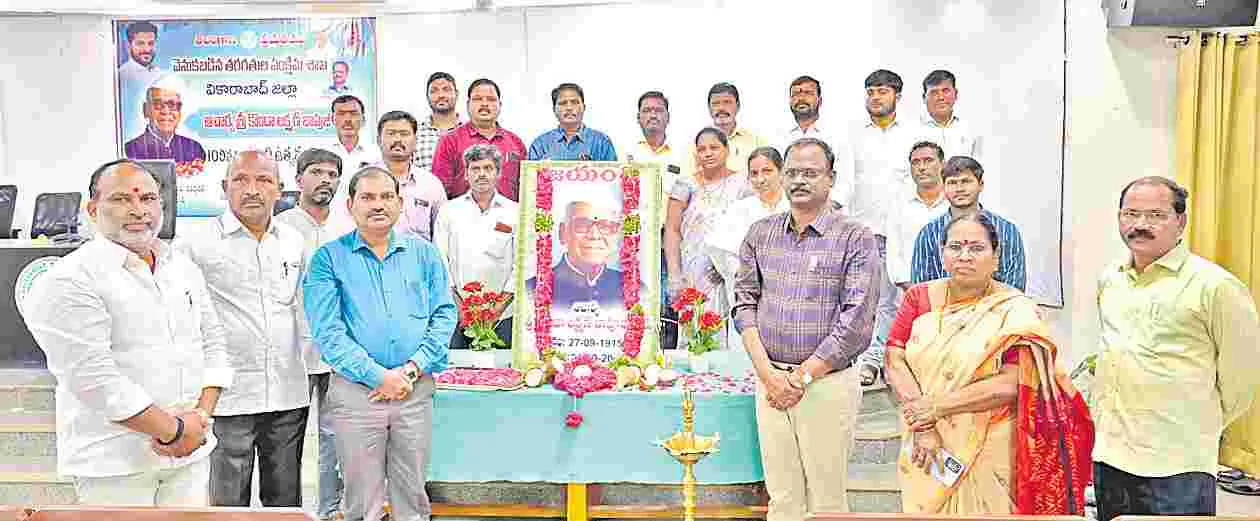 వికారాబాద్, సెప్టెంబరు27 : ఆచార్య కొండా లక్ష్మణ్ బాపూజీని ప్రతీ ఒక్కరు స్ఫూర్తిగా తీసుకోవాలని జిల్లా అదనపు కలెక్టర్ లింగ్యానాయక్ అన్నారు. శుక్రవారం కలెక్టరేట్ సమావేశ మందిరంలో జిల్లా వెనుకబడిన తరగతుల సంక్షేమ శాఖ ఆధ్వర్యంలో కొండా లక్ష్మణ్ బాపూజీ 109 వ జయంతిని ఘనంగా నిర్వహించారు. ఈ సందర్భంగా బాపూజీ చిత్ర పటానికి జిల్లా అదనపు కలెక్టర్ (స్ధానిక సంస్థలు) సుధీర్తో కలిసి ఆయన జ్యోతి ప్రజల్వన చేశారు. అనంతరం పూల మాలలు వేసి ఘనంగా నివాళులర్పించారు. ఈ సందర్బంగా మాట్లాడుతూ స్వాతంత్య్ర సమరయోధుడుగా, తెలంగాణ స్వరాష్ట్ర సాధనలో ఆచార్య కొండా లక్ష్మణ్ బాపూజీ ముఖ్య పాత్ర పోషించారని, వారి సేవలను స్మరించుకుంటూ జయంతి వేడుకలు జరుపుకోవడం సంతోషంగా ఉందన్నారు. తనకంటూ ఏమి లేకుండా బడుగు బలహీన వర్గాల అభివృద్ధికి తన ఆస్తులు మొత్తం దానం చేసిన త్యాగశీలి అని పేర్కొన్నారు. తెలంగాణ ప్రభుత్వం ఉద్యమకారుల సేవలను గుర్తించి అనేక కార్యక్రమాలను అధికారికంగా జరపడం సంతోషాన్ని కలిగిస్తుందని పేర్కొన్నారు.ఈ కార్యక్రమములో బీసీ సంక్షేమ అధికారి ఉపేందర్ , డీపీఆర్వో చెన్నమ్మ, కౌన్సిలర్ దత్తు, వివిధ సంఘాల నాయకులు తదితరులు పాల్గొన్నారు.