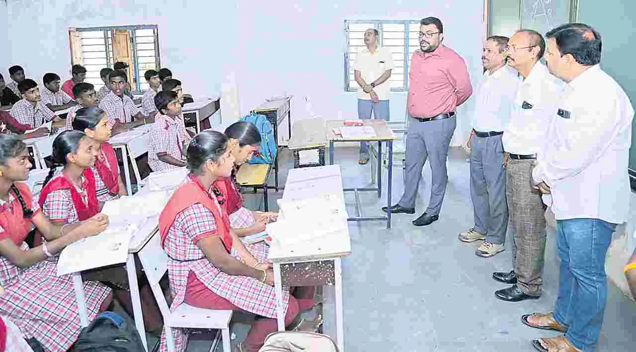 పదవ తరగతి విద్యార్థులు పరీక్షల్లో 10జీపీఏ సాధించాలని కలెక్టర్ బదావత్ సంతోష్ అన్నారు. నాగర్కర్నూల్ మండలంలోని తూడుకుర్తి జిల్లా పరిషత్ ఉన్నత పాఠశాలను ఆకస్మికంగా తనిఖీ చేశారు. ఈ సందర్భంగా పాఠశాలను మొత్తం సందర్శించి విద్యార్థులతో ముచ్చటించారు. విద్యార్థులకు కల్పిస్తున్న వసతులను, పాఠ్యసుస్తకాల, నోటుబుక్కులు, పంపిణీ, విద్యా ప్రమాణాలు, మౌలిక సదుపాయాల గురించి విద్యార్థులతో మాట్లాడారు. రానున్న పదవ తరగతి పరీక్షల్లో 10 జీపీఏ సాధించేలా విద్యార్థులు మంచిగా చదువుకోవాలని, ఉపాధ్యాయులు కూడా ఆ విధంగా కృషి చేయాలన్నారు. మధ్యాహ్న భోజన వంట చేసే విధానాన్ని కలెక్టర్ పరిశీలించారు. మధ్యాహ్న భోజనానికి వండే బియ్యంలో పురుగులు లేకుండా శుభ్రపర్చాలని సూచించారు. రుచికరమైన నాణ్యమైన భోజనాన్ని అందించాలన్నారు. కలెక్టర్ వెంట ఆరోగ్యశాఖ ప్రోగ్రామ్ అధికారి డాక్టర్ శ్రీనివాసులు, ఇమ్యూనైజేషన్ అధికారి డాక్టర్ రవినాయక్, నాగర్కర్నూల్ ఎంపీడీవో కోటేశ్వర్ తదితరులు పాల్గొన్నారు.