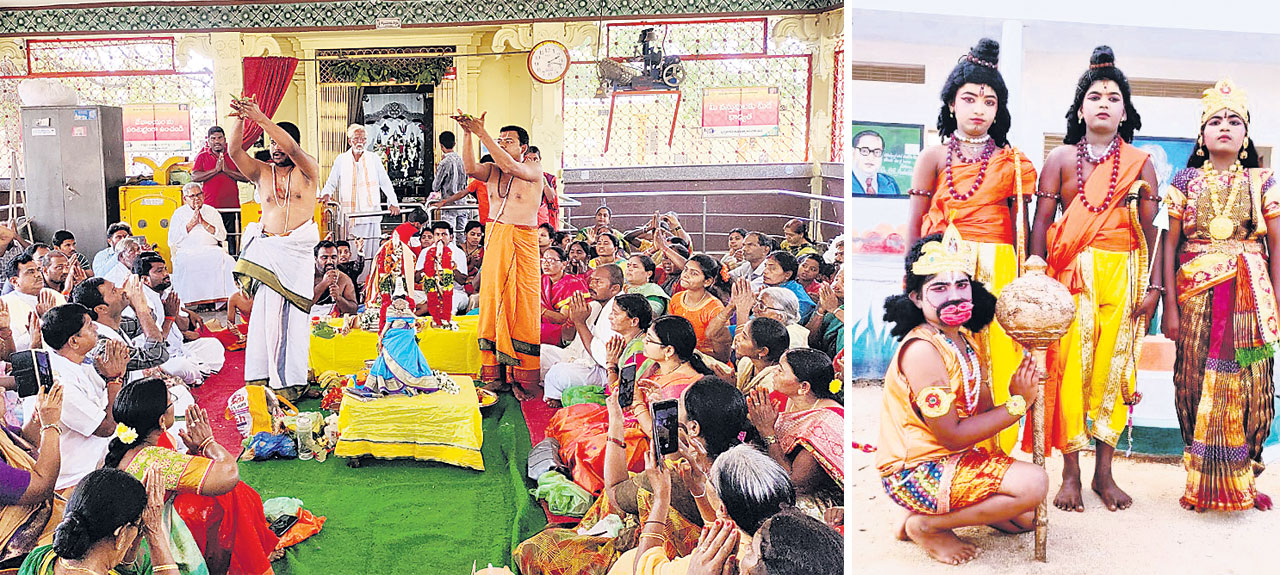వడ్డేపల్లి : మునిసిపాలిటీ కేంద్రమైన శాంతినగర్లోని రామాలయంలో అర్చకులు ప్రత్యేక పూజలు చేశారు. అనంతరం ఉత్సవ విగ్రహాలతో శోభాయాత్ర నిర్వహిం చారు. సరస్వతి పాఠశాలలో సీతారాములు, ఆంజనేయ స్వామి వేషధారణలో విద్యార్థులు ఆకట్టుకున్నారు.