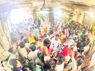 నేరేడుచర్ల: ప్రాచీన సోమప్ప దేవాలయంలో ఉదయం 3గంటల నుంచే భక్తుల రాక ప్రారంభమైంది. ట్రాఫిక్కు ఎ టువంటి అంతరాయం కలుగకుండా పోలీసులు ప్రత్యేక చ ర్యలు తీసుకున్నారు. లయన్స్క్లబ్ ఆధ్వర్యంలో దాతలు తా గునీటి సరఫరా చేశారు.బారులుతీరి దర్శనం చేసుకున్నారు.
