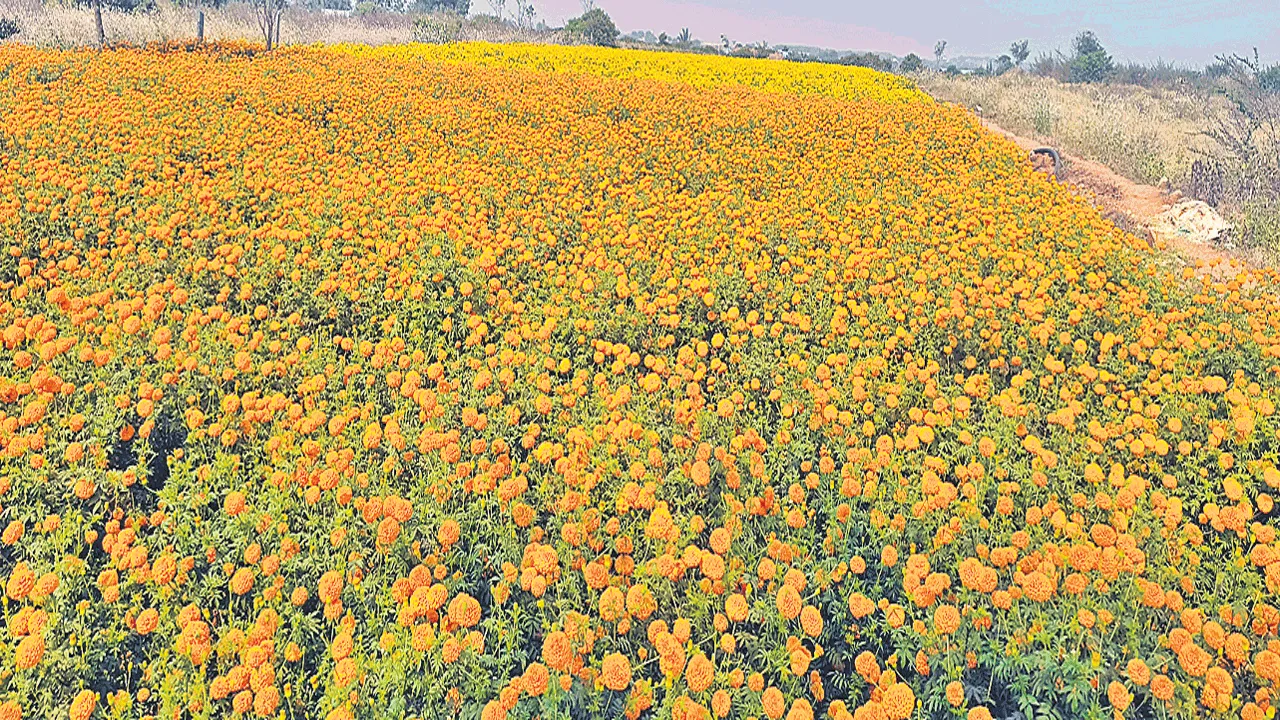 మహేశ్వరం నుంచి మన్సాన్పల్లి చౌరస్తాకు వెళ్లే రోడ్డు పక్కన బంతి తోటలోని పూల సోయగాలు ప్రకృతి ప్రేమికులను ఆకట్టుకుంటున్నాయి. రోడ్డు పక్కన విరబూసిన పసుపు పచ్చని పూల అందాలు ఆ దారివెంట వెళ్లేవారిని సంబ్రమాశ్చర్యానికి గురిచేస్తున్నాయి. కొందరు తోటలోకి వెళ్లి సెల్ఫీలు దిగి ఆనంద పడుతున్నారు.