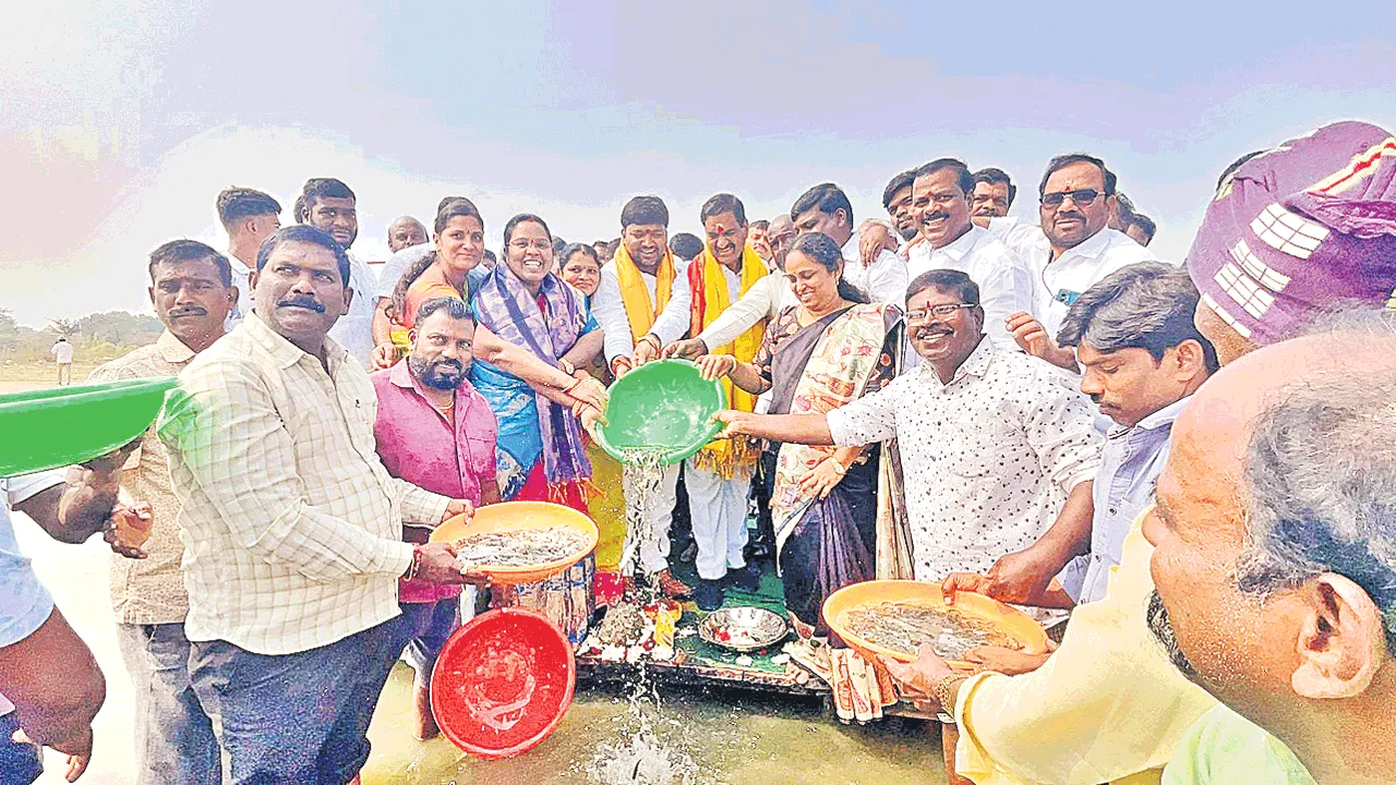 వృత్తిదారుల సంక్షేమం కోసం కాంగ్రెస్ ప్రభుత్వం కట్టుబడి ఉందని ఇబ్రహీంపట్నం ఎమ్మెల్యే మల్రెడ్డి రంగారెడ్డి అన్నారు. ఆదివారం ఇబ్రహీపట్నం పెద్ద చెరువులో మత్స్య శాఖ ఆధ్వర్యంలో ఫిషరీస్ కార్పొరేషన్ చైర్మన్ మెట్టు సాయికుమార్తో కలిసి ఉచిత చేపపిల్లలను వదిలారు.