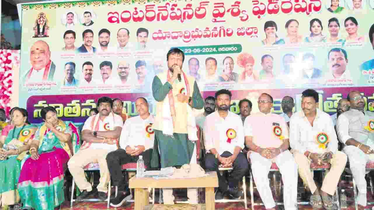 ఆలేరు రూరల్, జూన్ 23: సామాజిక సేవే ఇంటర్నేషనల్ వైశ్య ఫెడరేషన్ (ఐవీఎఫ్) లక్ష్యమని ఆ సంఘం రాష్ట్ర అధ్యక్షుడు ఉప్పల శ్రీనివాస్ గుప్తా అన్నారు. ఆలేరులో ఆదివారం జరిగిన సంఘం జిల్లా సమావేశం, నూతన కార్యవర్గం ప్రమాణ స్వీకారోత్సవంలో మాట్లాడారు. గాంధీ కలలను సాకారం చేయడమే తమ ముందున్న లక్ష్యమన్నారు. పీజీసీ సెల్లో రాష్ట్రస్థాయి ప్రథమ ర్యాంక్ సాధించిన మోట కొండూరు మండలం అమ్మనబోలు గ్రామానికి చెందిన చిట్టమల్ల సంధ్యను సన్మానించారు. పలు కుటుంబాలకు ఉచితంగా కుట్టు మిషన్లను అందజేశారు. కార్యక్రమంలో మాజీ ఎమ్మెల్యేలు గొంగిడి సునీత, బూడిద భిక్షమయ్య గౌడ్, ఐవీఎఫ్ రాష్ట్ర జిల్లా, మండల పట్టణ నాయకులు పబ్బ చంద్రశేఖర్ గుప్త, కె. నారాయణ, కె. శ్రీనివాస్, స్వప్న, భాగ్యలక్ష్మీ, మంజూల, సంతోష్కుమార్, వంగపల్లి ఆంజనేయస్వామి, సముద్రాల కల్పన, లక్ష్మణ్, సత్యం, సంతోష్, రమేష్, ఈశ్వర్, వరప్రసాద్, అశోక్, సందీప్, తదితరులు ఉన్నారు.