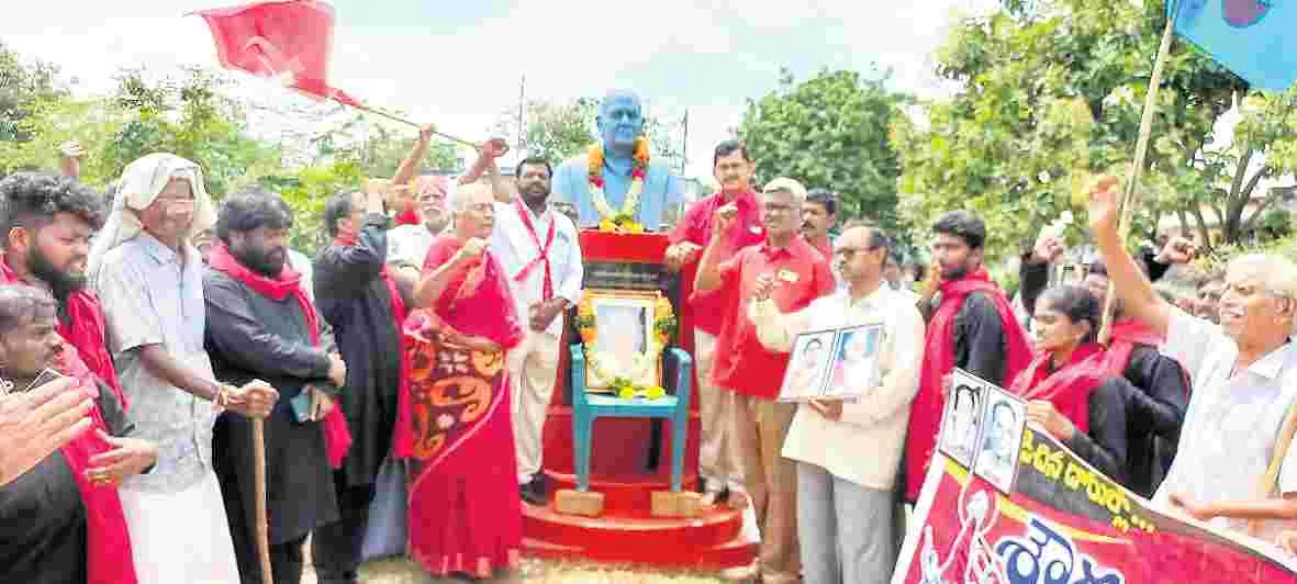చిలుకూరు: తెలంగాణ అమరవీరుల ఆశయ సాధనకు కృషిచేయాలని సీపీఐ సీనియర్ నాయకుడు, స్వాతంత్య్ర సమరయోధుడు దొడ్డా నారాయణరావు అన్నారు. పార్టీ ఆధ్వర్యంలో బేతవోలు, చిలుకూరు, నారాయణపురం, జెర్రిపోతులగూడెం గ్రామాల్లో తెలంగాణ సాయుధ పోరాట అమరవీరుల స్థూపాలను ఆవిష్కరించి నివాళులర్పించారు. కార్యక్రమంలో సీపీఐ రాష్ట్ర కార్యవర్గ సభ్యుడు గన్నా చంద్రశేఖర్, బెజవాడ వెంకటేశ్వర్లు, ఉస్తెల సృజన, మండవ వెంకటేశ్వర్లు, బద్దం కృష్ణారెడ్డి, కొండా కోటయ్య, చేపూరి కొండలు, మల్లేశ్వరి, రెమిడాల రాజు, సాహెబ్ అలీ పాల్గొన్నారు.