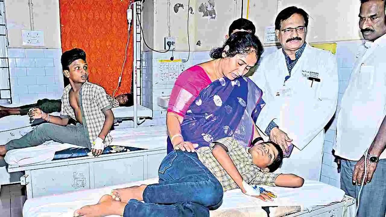 పెదనందిపాడు/గుంటూరు, అక్టోబరు 10 (ఆంధ్రజ్యోతి): గుంటూరు జిల్లా పెదనందిపాడు మండలం అనపర్రు గ్రామంలోని బీసీ వసతి గృహానికి చెందిన 54 మంది విద్యార్థులు కలుషిత ఆహారం తిని అస్వస్థతకు గురయ్యారు. శుక్రవారం ఉదయం 16 మంది వాంతులు, విరేచనాలతో ఇబ్బందిపడ్డారు. వెంటనే వారిని పెదనందిపాడులోని పీహెచ్సీకి తరలించారు. మిగిలిన 38 మంది కూడా అనారోగ్యానికి గురవడంతో పెదనందిపాడులోని ఆర్యవైశ్య కల్యాణ మండపానికి తరలించి అక్కడ ప్రత్యేక ఆరోగ్య శిబిరం ఏర్పాటు చేశారు. కలెక్టర్ తమీమ్ అన్సారీయా పెదనందిపాడు చేరుకుని విద్యార్థులను పరామర్శించారు. 16 మంది విద్యార్థుల పరిస్థితి ఆందోళనకరంగా ఉండటంతో వారిని గుంటూరు జీజీహెచ్కు తరలించారు. కాగా.. అస్వస్థతకు గురైన విద్యార్థులను బీసీ సంక్షేమ శాఖ మంత్రి ఎస్.సవిత పరామర్శించారు. త్వరలోనే డిశ్చార్జ్ చేస్తారని వారికి ధైర్యం చెప్పారు.